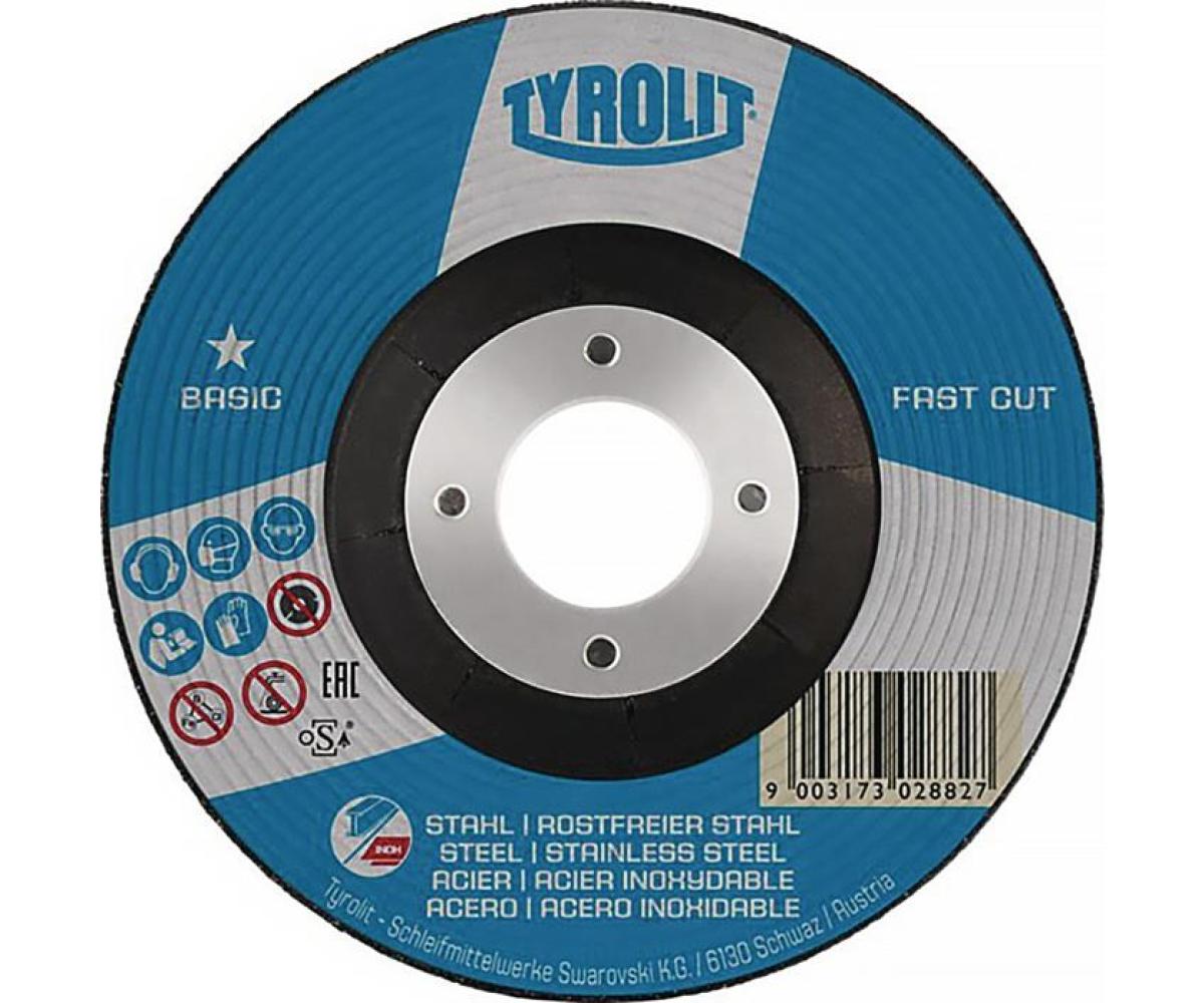 Weitere technische Eigenschaften · D x U x H: 125 x 6 x 22,23mm · Nettogewicht: 0,183kg · Produktlinie: BASIC · Spezifikation: A 30 P- BFB · Vs /max: 72m/s · Werkstoffeignung: Rostfreier Stahl, Stahl · Schruppscheibe BASIC · FASTCUT D125xS6mmKörnung · 30 gekr.2in1 ·