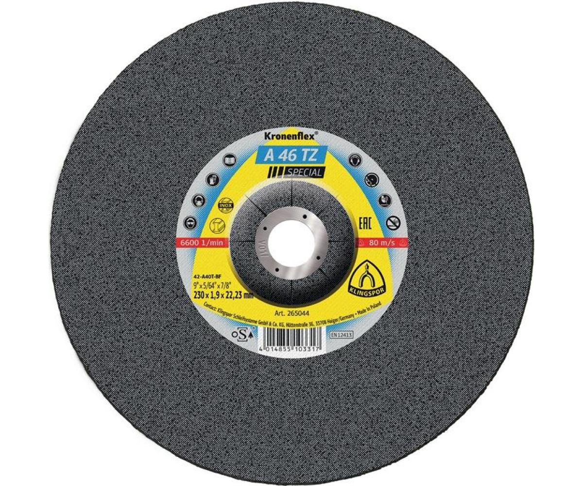 Weitere technische Eigenschaften · Anwendungsgebiet: Edelstahl, Stahl · Höchstgeschwindigkeit: 80m/s · Nutzungsart: Winkelschleifer · Trennscheibe A 46 TZ · Special D230x1,9mm · gekr.INOX Bohr.22,23mm ·