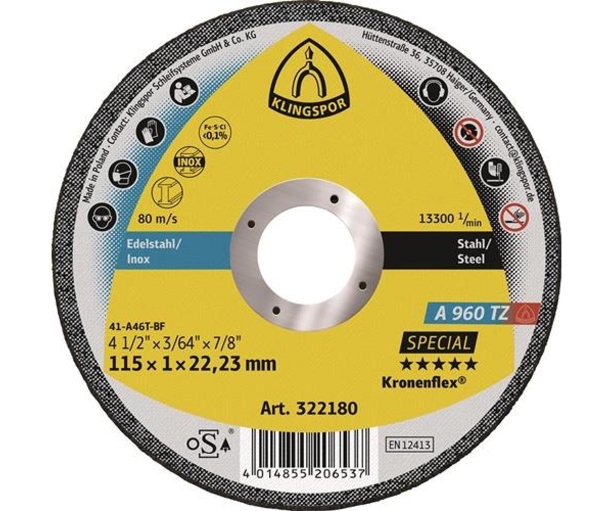 Trennscheibe A 960 TZ · Special D115x1mm ger.INOX · Bohr.22,23mm KLINGSPOR ·