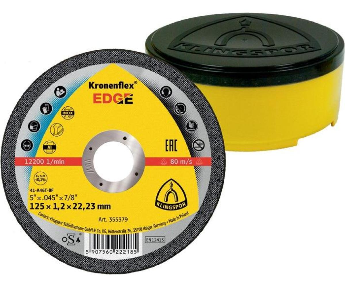 Hochleistungstrennscheibe mit selbstschärfendem Schleifkorn · hohe Schnittleistung bei gleichzeitig langer Lebensdauer · breites Anwendungsspektrum · verpackt zu je 25 Stück in der Kronenflex® Box, für dauerhaft hohe Leistung und Schutz vor Feuchtigkeit · Bohrung 22,23 mm Ø