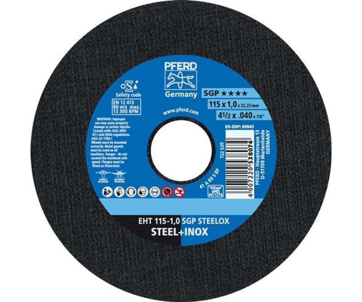 Trennscheibe SGP STEELOX D115x1mm ger.INOX Bohr.22,23mm PFERD | 25 Stück