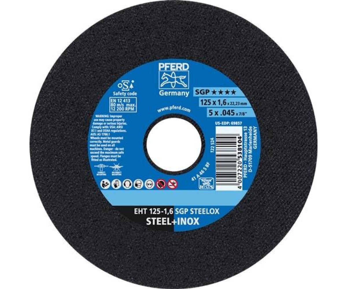 Trennscheibe SGP STEELOX · D125x1,6mm ger.INOX · Bohr.22,23mm PFERD ·