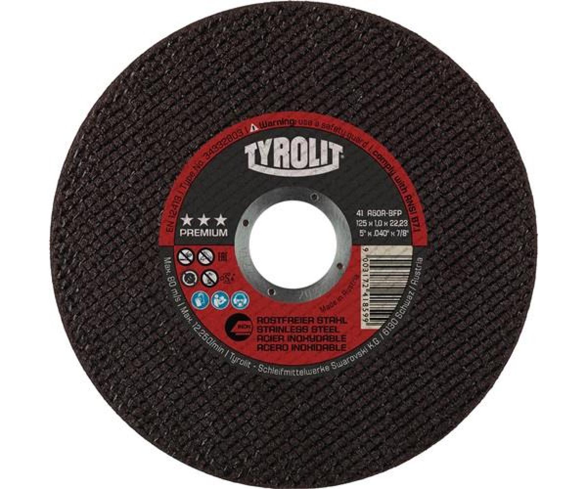 Trennscheibe Premium · D125x1mm ger.INOX · Bohr.22,23mm TYROLIT ·