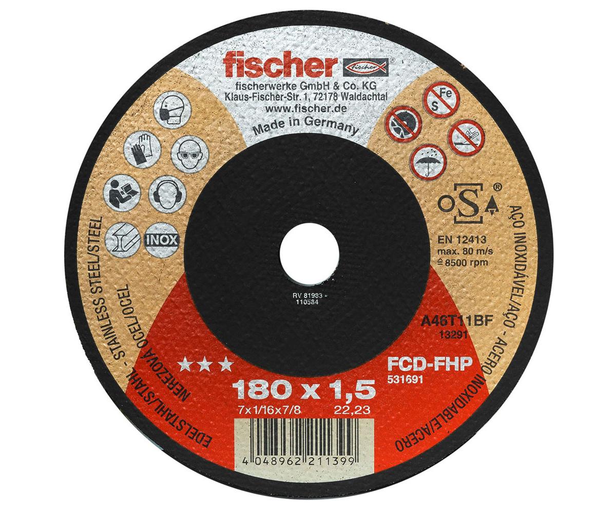 Die fischer Trennscheibe FCD-FHP ist eine leistungsstarke Metall-Trennscheibe für hohe Anwendungsansprüche. Die eisen- und schwefelfreie Trennscheibe eignet sich ideal für das Trennen von Stahl- und Edelstahl mit antriebsstarken Winkelschleifern. Durch den extradünnen Schneidrand wird eine geringe Gratbildung und ein reduzierter Funkenflug garantiert. Der hochwertige Aluminiumoxid-Schleifkern und die optimierte Bindungsmatrix ermöglichen ein besonders laufruhiges und leises Trennen für erheblich mehr Schnitte und ein spürbarer Anwendungskomfort.