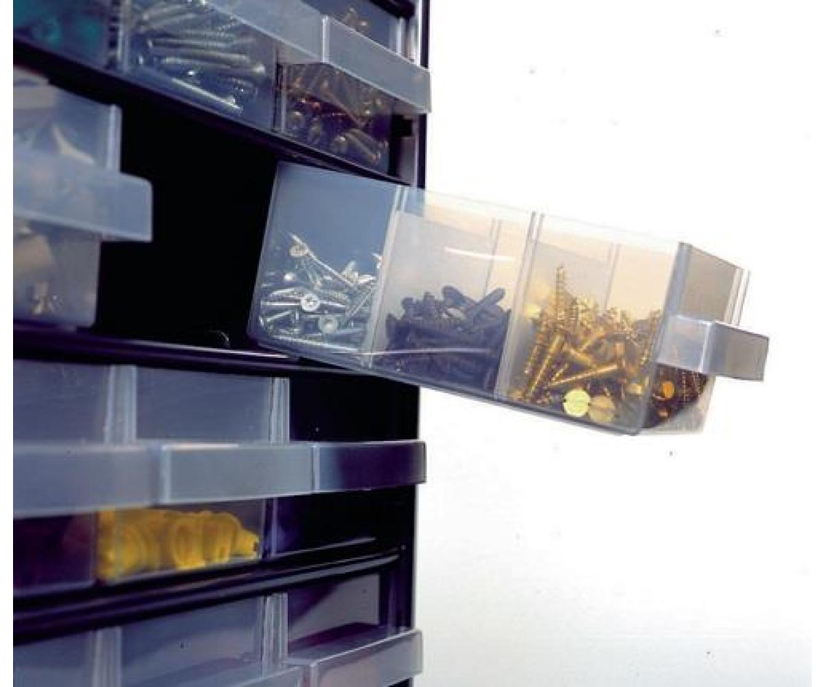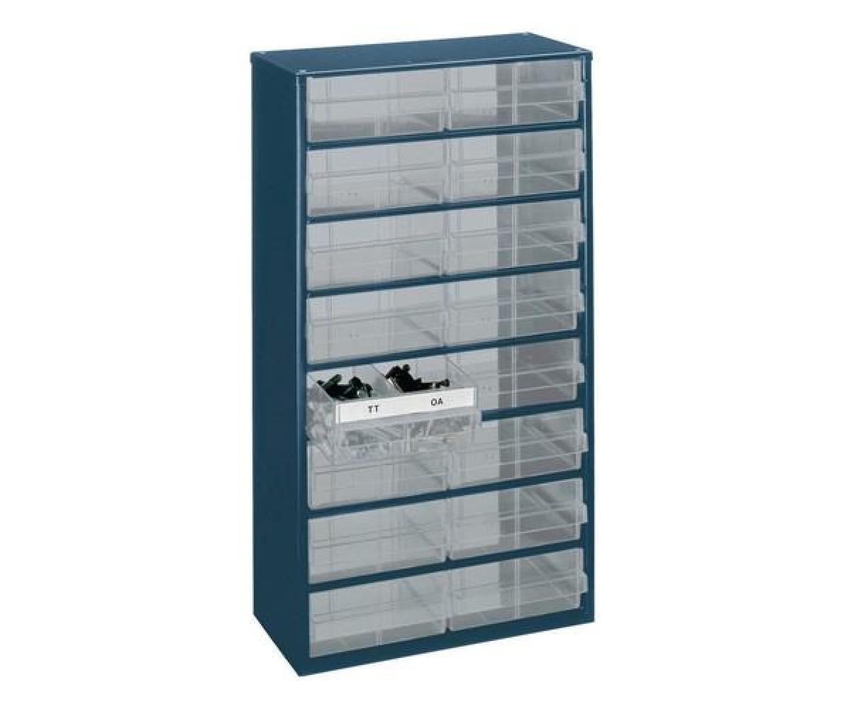 Kleinteilemagazin B.306xT.150xH.552mm Stahlblech dkl.-blau/transp./Schubl.a.PP