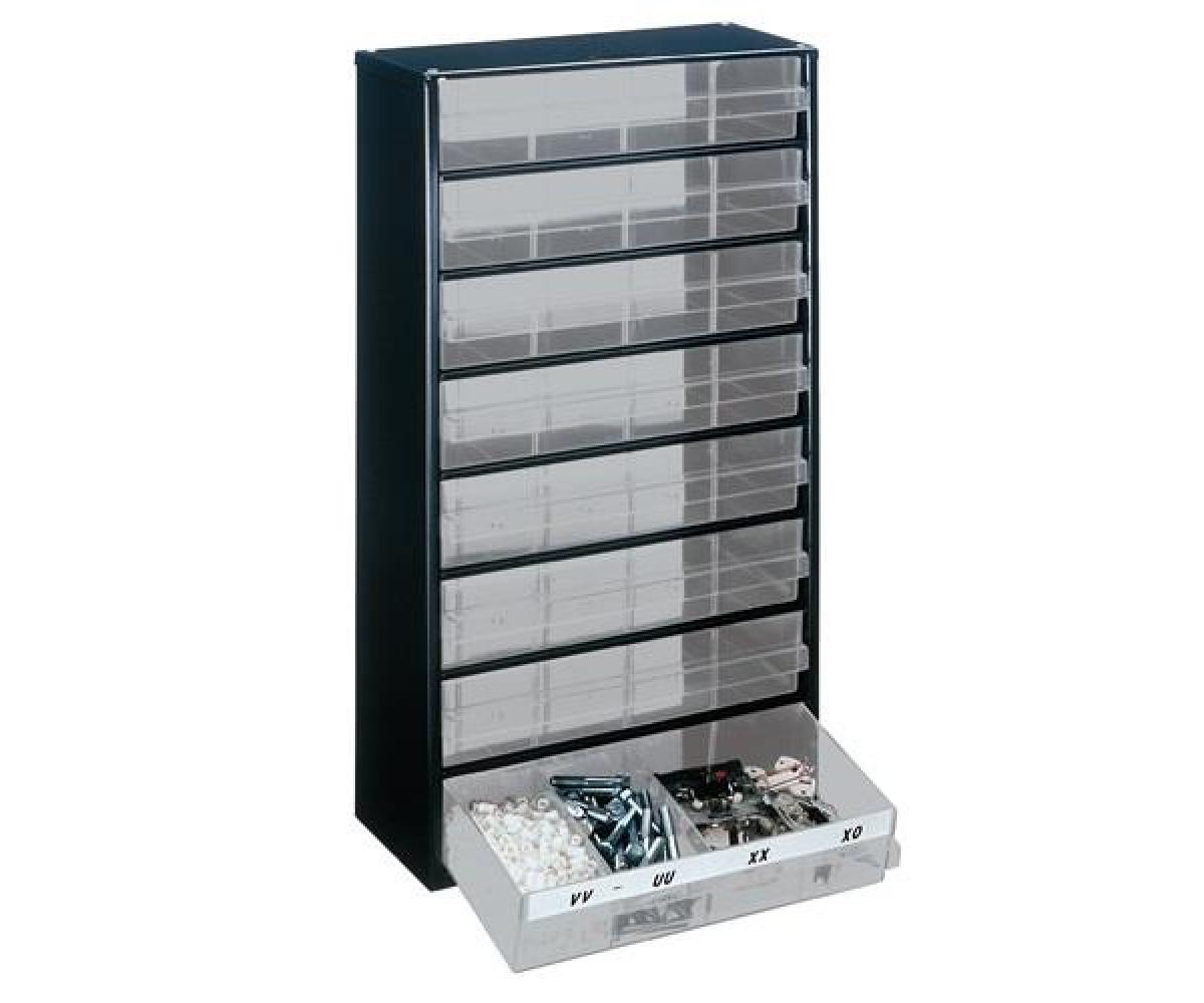 zur Wandmontage und Aufnahme in den Drehturm Art.-Nr. 4000 871 595 geeignet · aus galvanisiertem Stahlblech · dunkelblau/transparent · Schubladen aus bruchsicherem Polypropylen · mit Auszugsicherung · jede Schublade kann in mind. 3 Fächer unterteilt werden · Trennwände bitte separat bestellen - gehören nicht zum Lieferumfang · mit Gummifüßen und Aufhängelöchern durch den Zukauf von entsprechenden Trennwänden können alle Schubladen mehrfach unterteilt werden für das schnelle Finden des Inhaltes können die Schubladen mittels Spezialetiketten beschriftet werden · Etiketten bitte separat bestellen - gehören nicht zum Lieferumfang