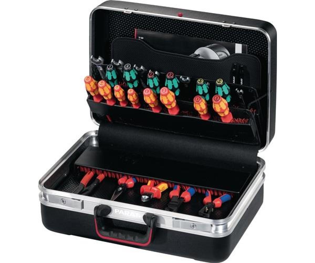 Schalenkoffer CLASSIC · Plus CP-7 · B460xT190xH310mm 27l · CP-7 Stecksystem: Mit diesem System kann der Werkzeugkoffer individuell bestückt werden · die Werkzeuge bleiben immer an ihrem Platz, selbst bei Öffnung kopfüber · geeignet für die Aufnahme von Werkzeugen mit einer Stärke bis max. 26 mm Ausstattung: · 1 Werkzeugtafel, 2-seitig, mit CP-7-Werkzeughalter bis Ø 11 mm und bis Ø 15 mm · 1 Werkzeugtafel mit CP-7-Werkzeughalter bis Ø 11 mm · 1 Bodenschale mit Abdeckplatte, Höhe 58 mm, frei unterteilbar · 1 Abdeckplatte mit CP-7-Werkzeughalter bis Ø 26 mm · 1 Dokumentenfach im Deckel ·
