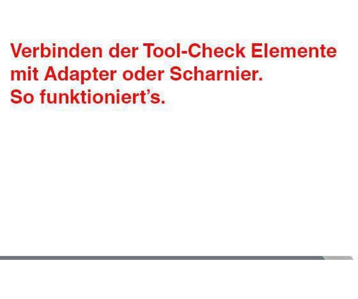 flexibles Scharnier für das Tool-Check Modular-System · ermöglicht eine flexible Verbindung von zwei Tool-Check Modular Elementen · die verbundenen Elemente können kompakt zusammengeklappt werden