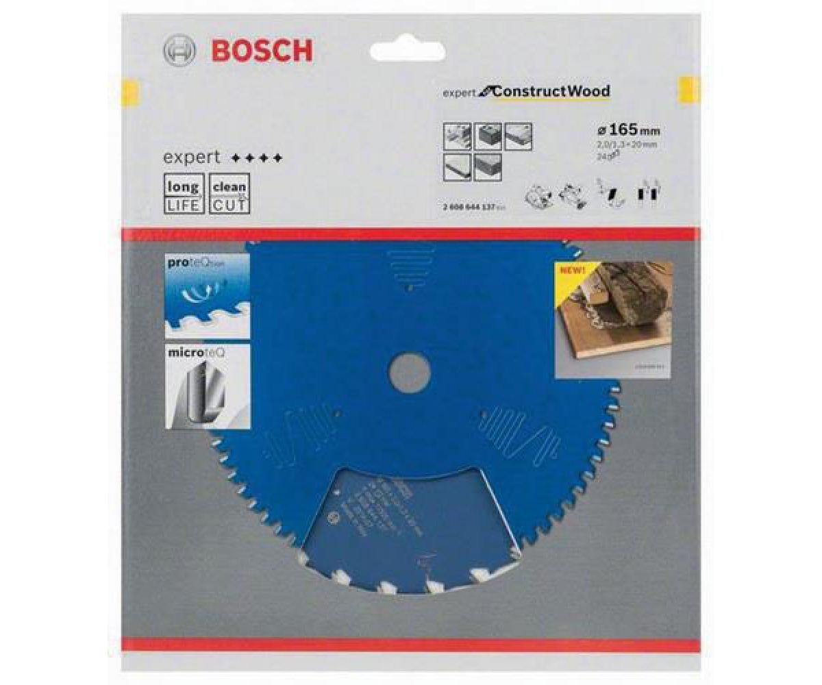 Expert for Construct Wood für Tauch- und Handkreissägen · das spezielle Zahndesign und die breite Abstützung im Zahnrücken sorgen für eine hohe Widerstandskraft und schneiden Baustellenholz mit Fremdkörpern wie Nägel und Betonreste · auch geeignet zum Schneiden von Schalungsbrettern · rohen Spanplatten · Akustikplatten · Leichtbauplatten sowie Gasbeton · Zähne aus Microteq für hohe Lebensdauer