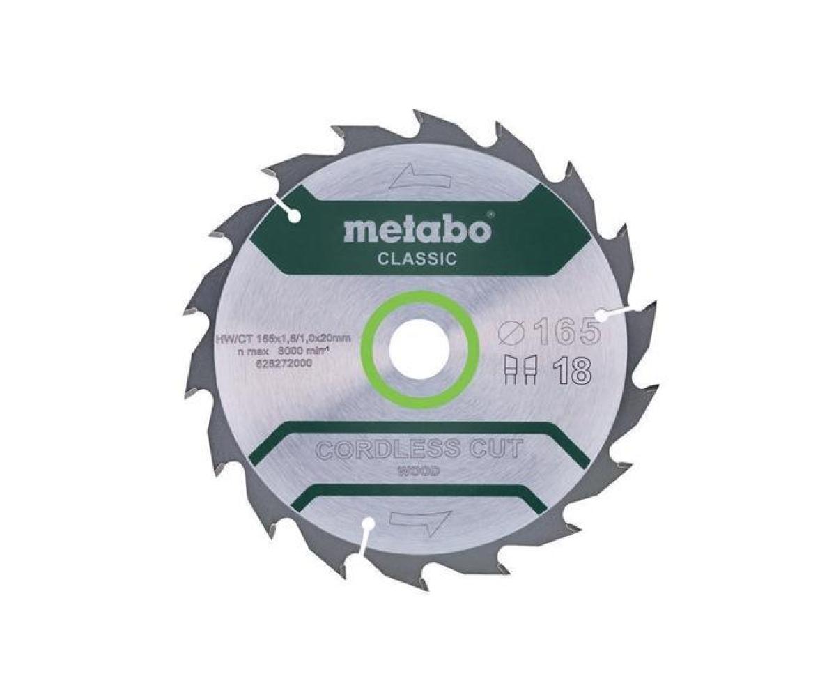 Weitere technische Eigenschaften · Durchmesser x Schnittbreite x Bohrung: 165mm · geeignet für: KS 18 LTX 57 / KT 18 LTX 66 BL / KS 18 LTX 66 BL · Spanwinkel: 20Grad · Stammblattdicke: 1mm · Verpackung: Karton · Kreissägeblatt cordless · cut wood classic AD 165mm · Z.18 Bohr.20mm ·