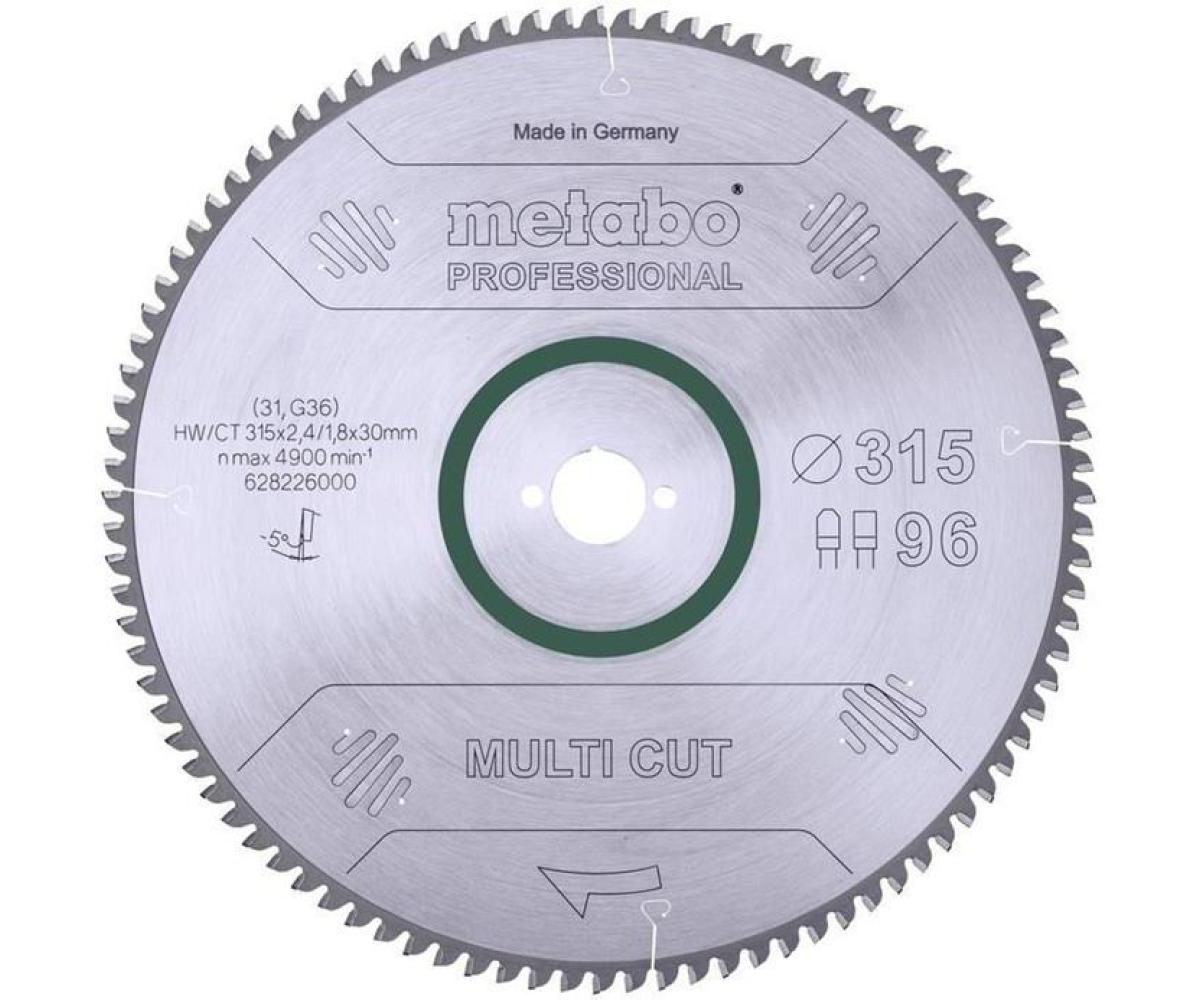 Weitere technische Eigenschaften · Durchmesser x Schnittbreite x Bohrung: 315mm · geeignet für: KGS 315 Plus · Spanwinkel: 5° neg. · Stammblattdicke: 1,8mm · Verpackung: Karton · Kreissägeblatt multi cut · professional HW/CT 315x30 · x2,4/1,8 D315xB2,4x30mm 9 ·