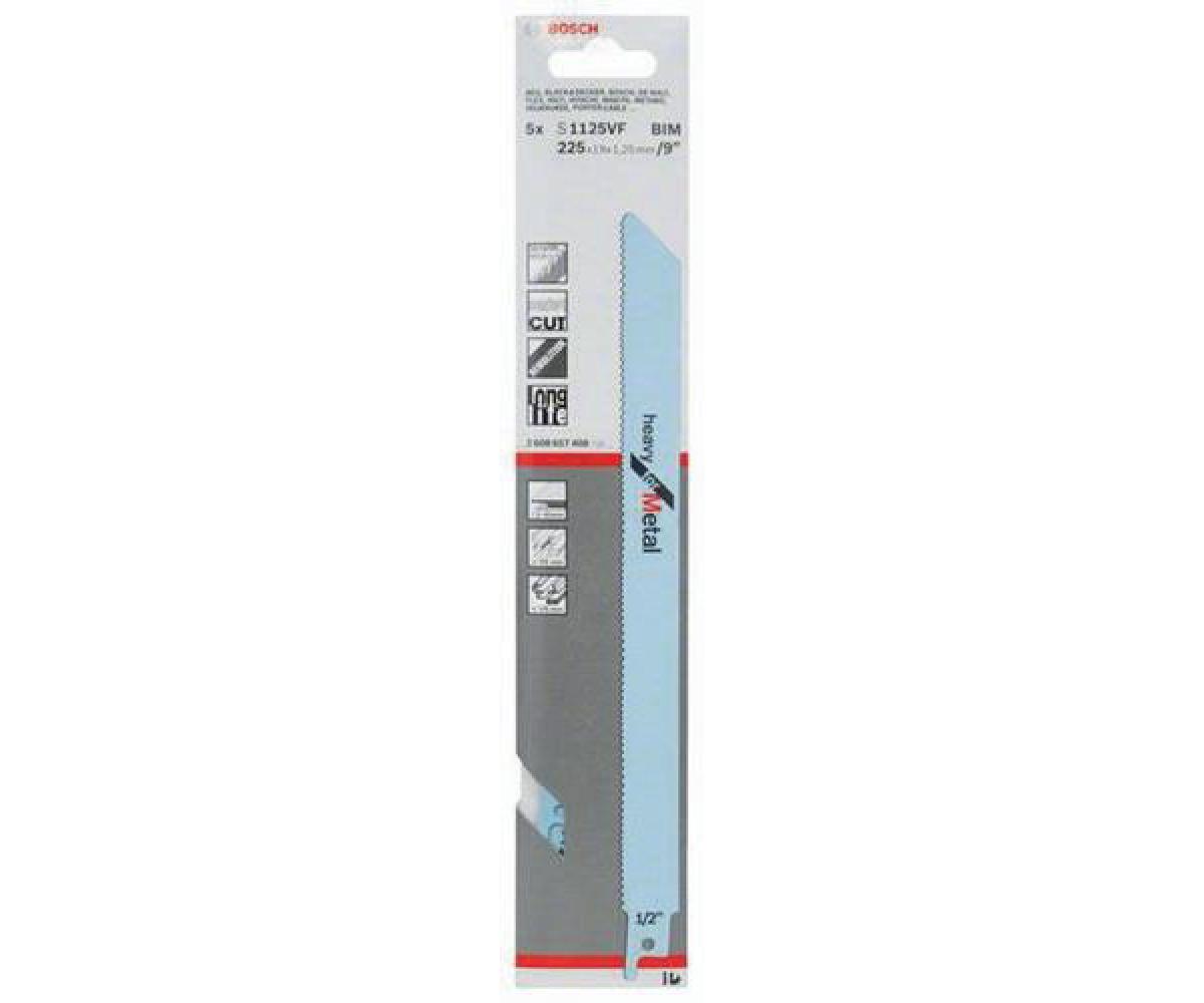 Säbelsägeblatt S 1125 VF Heavy for Metal. Werkstoff: BIM. Zahnausführung: Varioverzahnt. Einsatzbereiche: Für mittelstarke bis starke Bleche (von 2 bis 10 mm Stärke) · für dünnwandige und dickwandige Rohre und Profile (kleiner als 175 mm Stärke). Ideal für Abbrucharbeiten in Metall. Müheloser · feiner Schnitt. Inhalt der Verkaufsverpackung: 5 Stück.