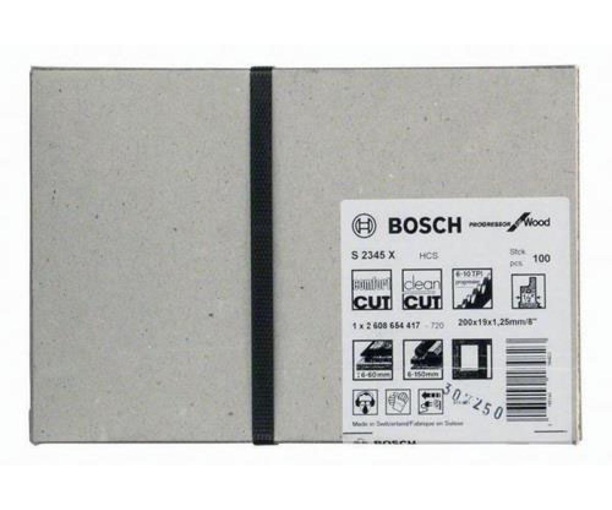 Säbelsägeblatt S 2345 X. Progressor for Wood. Werkstoff HCS. Zahnausführung: geschränkt · geschliffen. Einsatzbereiche: Für Konstruktionsholz (kleiner als 150 mm Stärke) · Platten: Span · MDF (von 6 bis 60 mm Stärke) · für Sperrholz · Kunststoff (kleiner als 150 mm Stärke) · für Holzwand (kleiner als 150 mm Stärke). Müheloser · feiner Schnitt. Inhalt der Verkaufsverpackung: 100 Stück.
