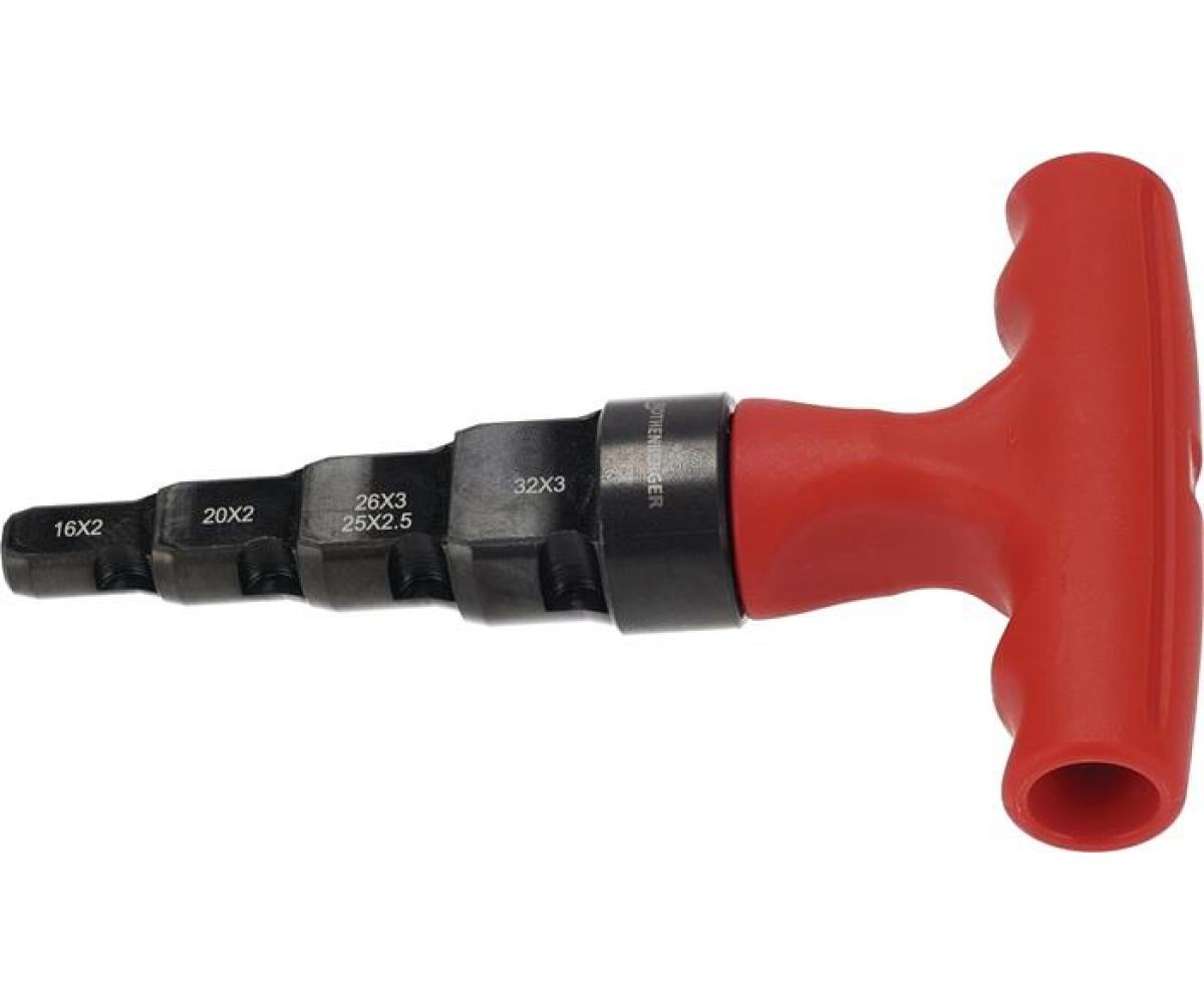 Der ROCALIBER S - ROTHENBERGERs All-In-One-Werkzeug zum Kalibrieren und Entgraten.Durch die integrierte Ratschenfunktion von ROTHENBERGER (RO-Ratchet) wird Ihnen ein komfortables und sicheres Bearbeiten in allen Lagen garantiert - ganz ohne Ermüdungserscheinungen. Egal ob horizontal · vertikal oder über Kopf: Der ROCALIBER S bietet ihnen bestmögliche Unterstützung in allen Arbeitslagen und zählt somit zu den außergewöhnlichen Kalibrierungswerkzeugen im Markt.Im Einsatzbereich von 16x2/20x2/26x3 (25x2,5)/32x3 mm deckt der ROCALIBER S dabei die die gängigsten Durchmesser für Kunststoffrohre ab. Dank des komfortablen T-Griffs liegt der ROCALIBER S besonders gut in der Hand und ermöglicht ein angenehmes Arbeiten.Die Bearbeitungsflächen des ROCALIBERs unterlagen einer speziellen Materialbehandlung und sind dadurch nicht nur äußerst präzise · sondern auch besonders robust. So ist höchste Präzision beim Arbeiten mit den ROCALIBER S gegeben · ohne Kompromisse bei der Haltbarkeit einzugehen. Mittels integrierte Ratschenfunktion von ROTHENBERGER (RO-Ratchet) wird ein komfortables und sicheres Bearbeiten von Kunststoffrohren in allen Lagen garantiertDeckt die wichtigsten Rohrdurchmesser im Einsatzbereich 16x2/20x2/26x3 (25x2,5)/32x3 mm abLiegt mittels T-Griff komfortabel in der HandDualfunktion: Kalibrieren und Entgraten (innen) in einem ToolSpezielle Materialbehandlung der Schnittkanten steigert die Verschleissfestigkeit des ROCALIBERs bei konstanter Präzision Der ROCALIBER S ist ein Kalibrierungswerkzeug mit einem Arbeitsbereich von 16 - 32 mm.