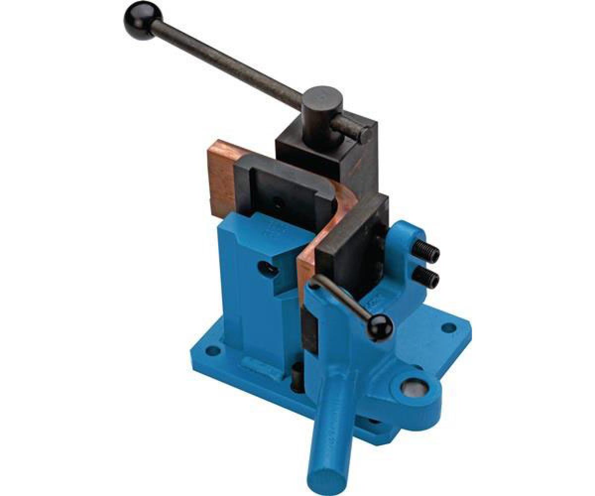 manuell bis 90° · mit selbsthemmender Exzenter-Schnellspannung · Winkelanschlag stufenlos einstellbar · mit Längenanschlag und Biegehebelverlängerung · Biegewerkzeug drehbar und scharfkantig · r = 4 mm, Ausführung 100 mm + 120 mm zusätzlich mit Biegewerkzeug r = 15 mm / r = 25 mm