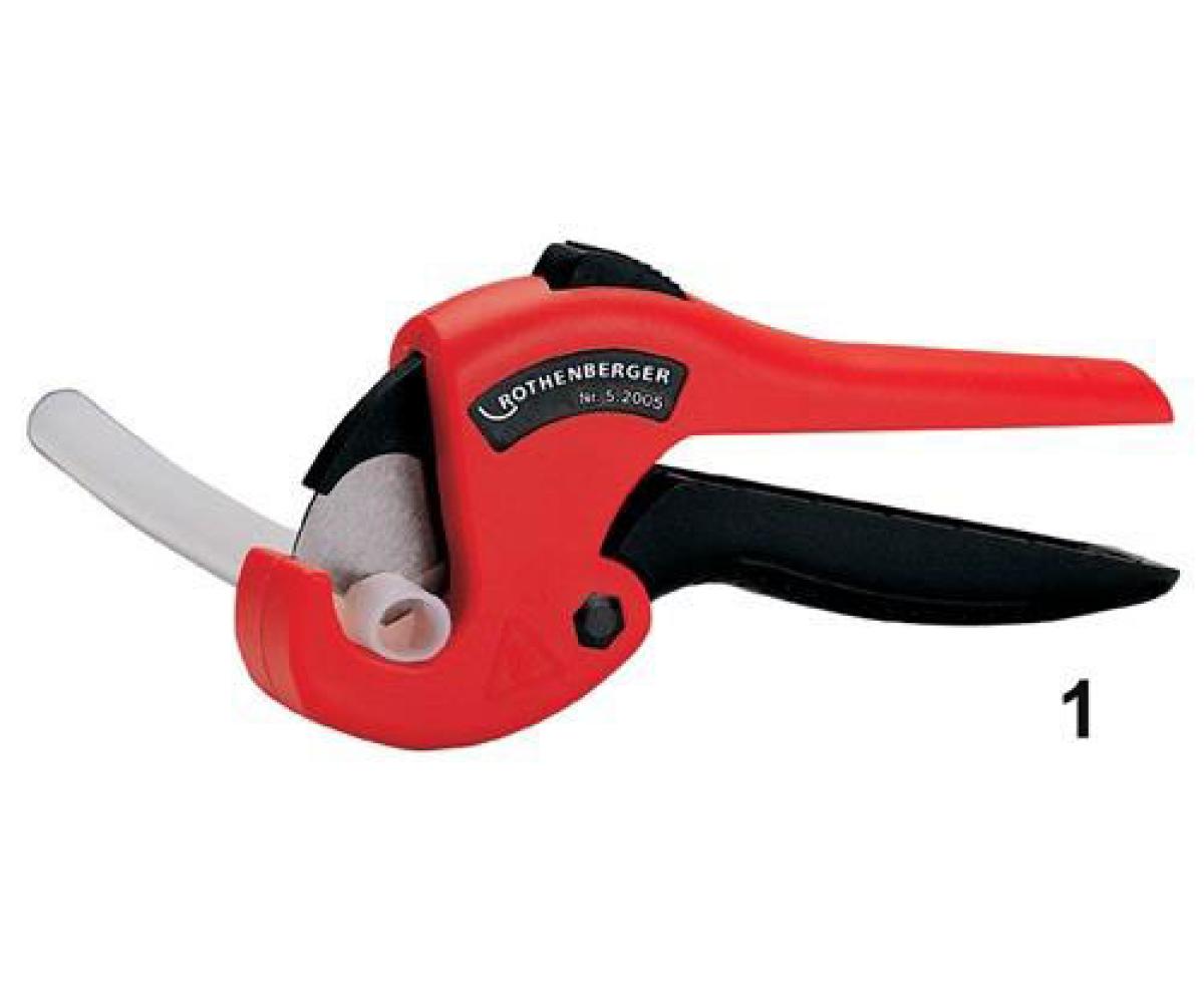 zum präzisen und mühelosen Trennen von PP-, PE-, PEX-, PB und PVDF-Rohren · rostfreie Stahlklinge mit V-Schliff: Präziser Punktanschnitt ohne Deformation · geringer Kraftaufwand: Ideal verzahnte Schneidkurve · breite Rohrauflage: Sorgt für einen präzisen rechtwinkligen Schnitt · Auslösehebel per Knopfdruck: So können Sie das Messer automatisch und kontrolliert öffnen · Transportsicherung: Nach der Anwendung können die Zangenschenkel in Transportstellung arretiert werden Typ TC 32 für Mehrschicht-Verbundrohre MSR Typ TC 63 Professional für PVC-Rohre