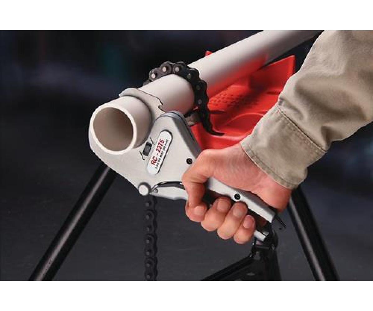 zum Schneiden von PVC, CPVC, PEX-Rohren, Polyethylen und Gummischläuchen · verminderter Kraftaufwand beim Schneiden von härteren Kunststoffarten durch Ratschenmechanismus · schneller Klingenwechsel ohne Werkzeug