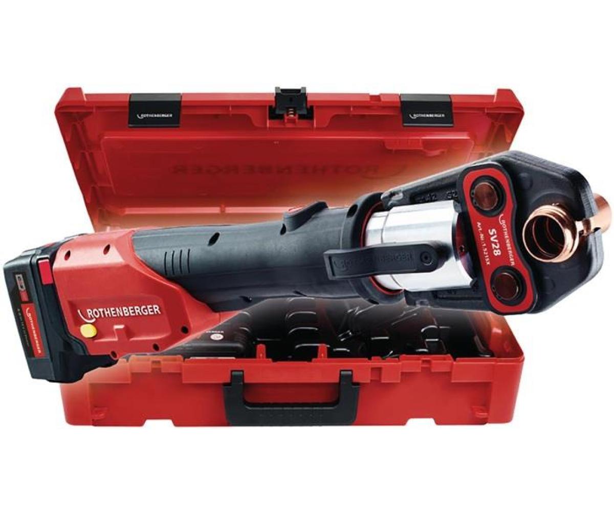 Das ROMAX 4000 Set EU beinhaltet die Pressbacken der Kontur SV in den Größen 15-22-28 mm. Die elektrohydraulische · radiale Pressmaschine ROMAX 4000 eignet sich ideal zum systemkonformen Verpressen von Fittings aus Metall · Kunststoff- und Mehrschichtverbundsystemen (MSR) bis 110 mm. Die ROMAX 4000 verpresst Fittings mit einer Kolbenkraft von 32-34 kN und einem Presszyklus von 5 Sekunden. Ergonomisches und energieeffizientes Arbeiten auch über längere Zeit · werden durch das geringe Gewicht von 3,6 kg und einer ausgewogene Gewichtsverteilung ermöglicht. Konstante Presskraft über den kompletten Presszyklus wird durch die Constant Force Technology (CFT) garantiert. Durch das verbesserte Serviceintervall von 40.000 Presszyklen / 2 Jahren · wird eine hohe Produktivität gewährleistet. Geringes Gewicht von 3,6 Kg für ermüdungsfreies Arbeiten auch in schwierigen SituationenSchnelles Arbeiten durch Verpressungen unter 5 SekundenErhöhte Leistungskapazität durch verbesserte Akku-TechnologieErhöhter Serviceintervall nach 40.000 Verpressungen / 2 Jahren Die elektrohydraulische Akku-Pressmaschine zum systemabhängigen Verpressen von Fittingen in der Sanitär- · Heizungs- oder Klimabranche.