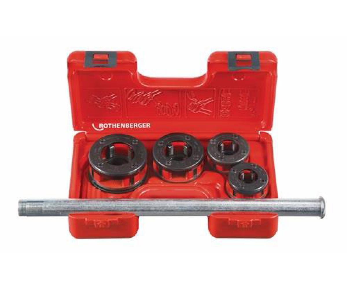 Weitere technische Eigenschaften · mit Schneidköpfen mm: 12,70, 19,05, 25,40, 31,75mm · für Rohr-Ø mm: 12,70 - 31,75mm · Zubehör: mit Ratschenhebel · mit Schneidköpfen: 1/2, 3/4, 1, 1 1/4? · Lieferung: im Kunststoffkoffer · Schneidkluppenset SUPER · CUT 1/2,3/4,1,1 1/4 Zoll · ROTHENBERGER ·