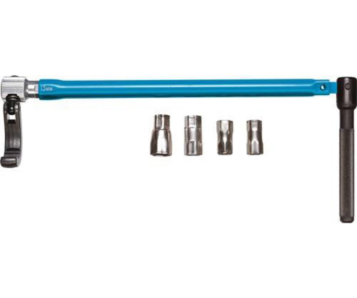 für Einhebelmischbatterien und Standhähne mit zentraler Verschraubung · mit 13 mm Sechskantantrieb und zusätzlichen Einsätzen für 9, 10, 11 und 14 mm · schwenkbare Klaue für Rechts- und Linksgang