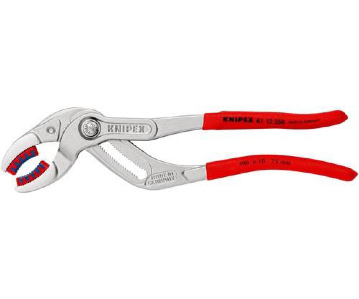 Weitere technische Eigenschaften · Griff: mit rutschhemmendem Kunststoffüberzug · Ausführung: mit Kunststoffbacken · Syphon-/Connectorenzange · L.250mm Spann-W.10-75mm · verchr. ·
