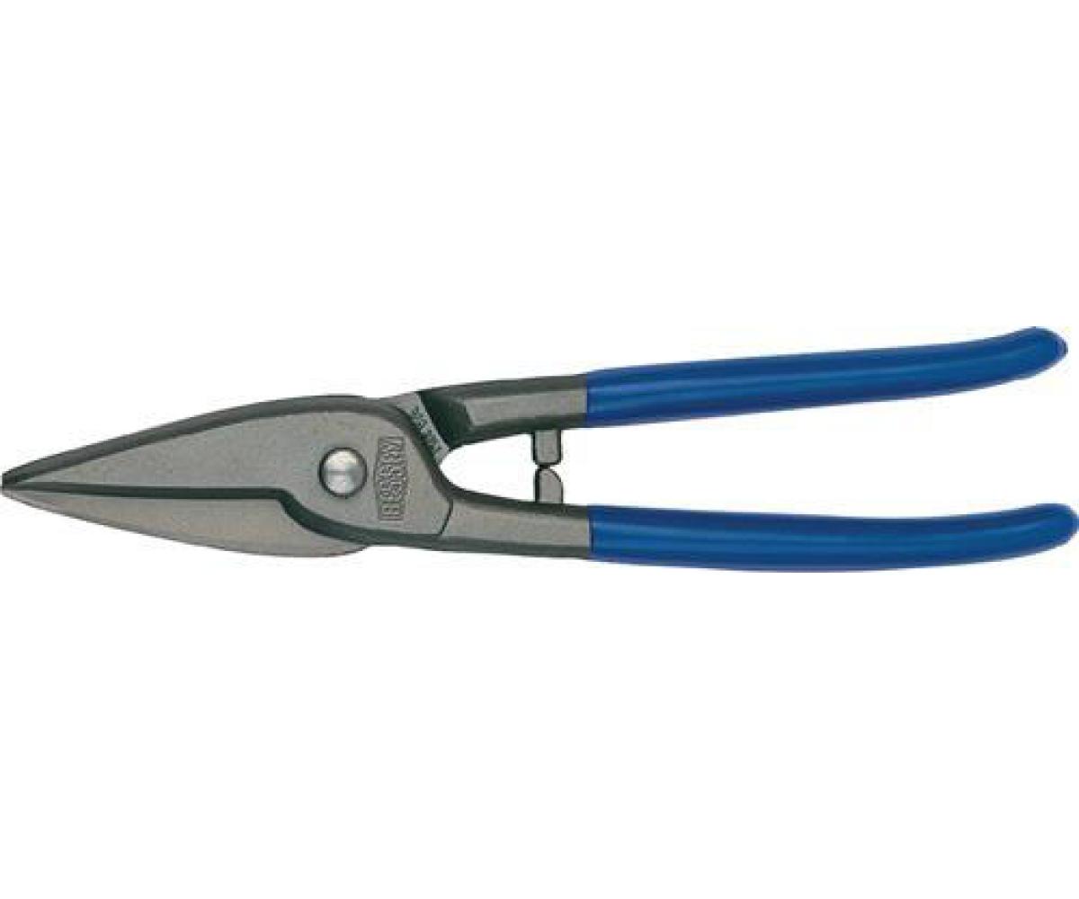 Berliner Form · Schneiden aus Edelstahl induktiv gehärtet 59 HRC · für gerade Schnitte · Schraube ganz aus Stahl · Kopf grau gesandstrahlt · mit offenen, abgebogenen Schenkeln · Griffe lackiert