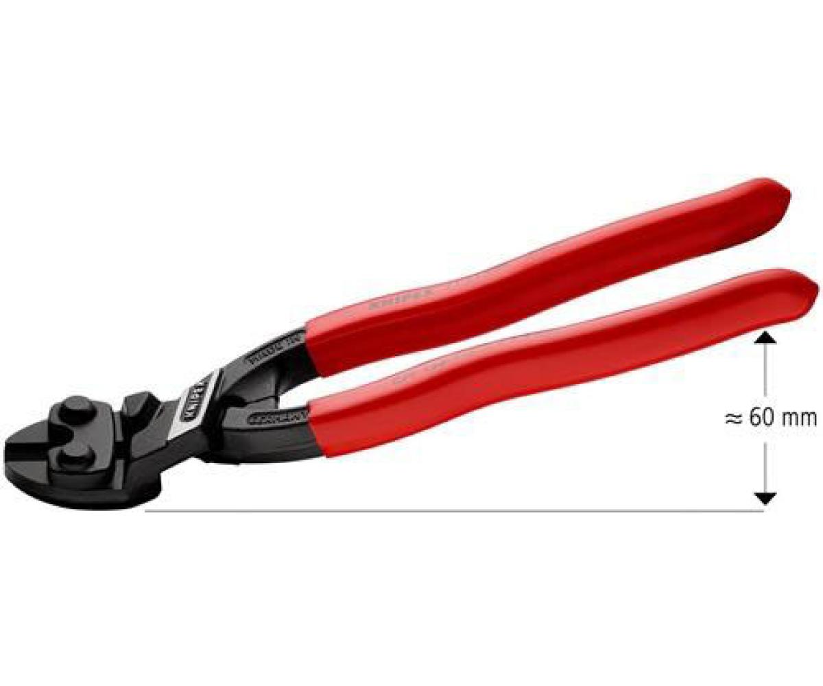 Weitere technische Eigenschaften · Material: Chrom-Vanadin-Elektrostahl · Norm: DIN ISO 5743 · Kompaktbolzenschneider · CoBolt® L.200mm · Ku.-Überzug 20Grad 3,6mm · mit 20° abgewinkeltem Kopf, mit einseitiger Lasche und Seitenschnitt zum bündigen Schneiden, mit Freiraum zum Greifen, verbesserte Schneidengeometrie, mit Greiffläche Zange schwarz atramentiert ·