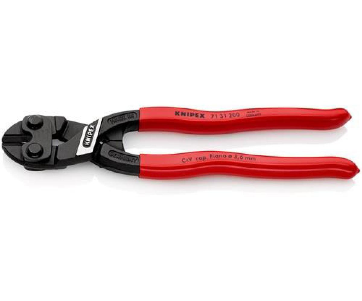 Weitere technische Eigenschaften · Material: Chrom-Vanadin-Elektrostahl · Norm: DIN ISO 5743 · Kompaktbolzenschneider · CoBolt® L.200mm · Ku.-Überzug ger.3,6mm · mit zusätzlicher Aussparung zur Schneiderleichterung bei dickeren Drähten z. B. bei abgehängten Deckenkonstruktionen Zange schwarz atramentiert ·
