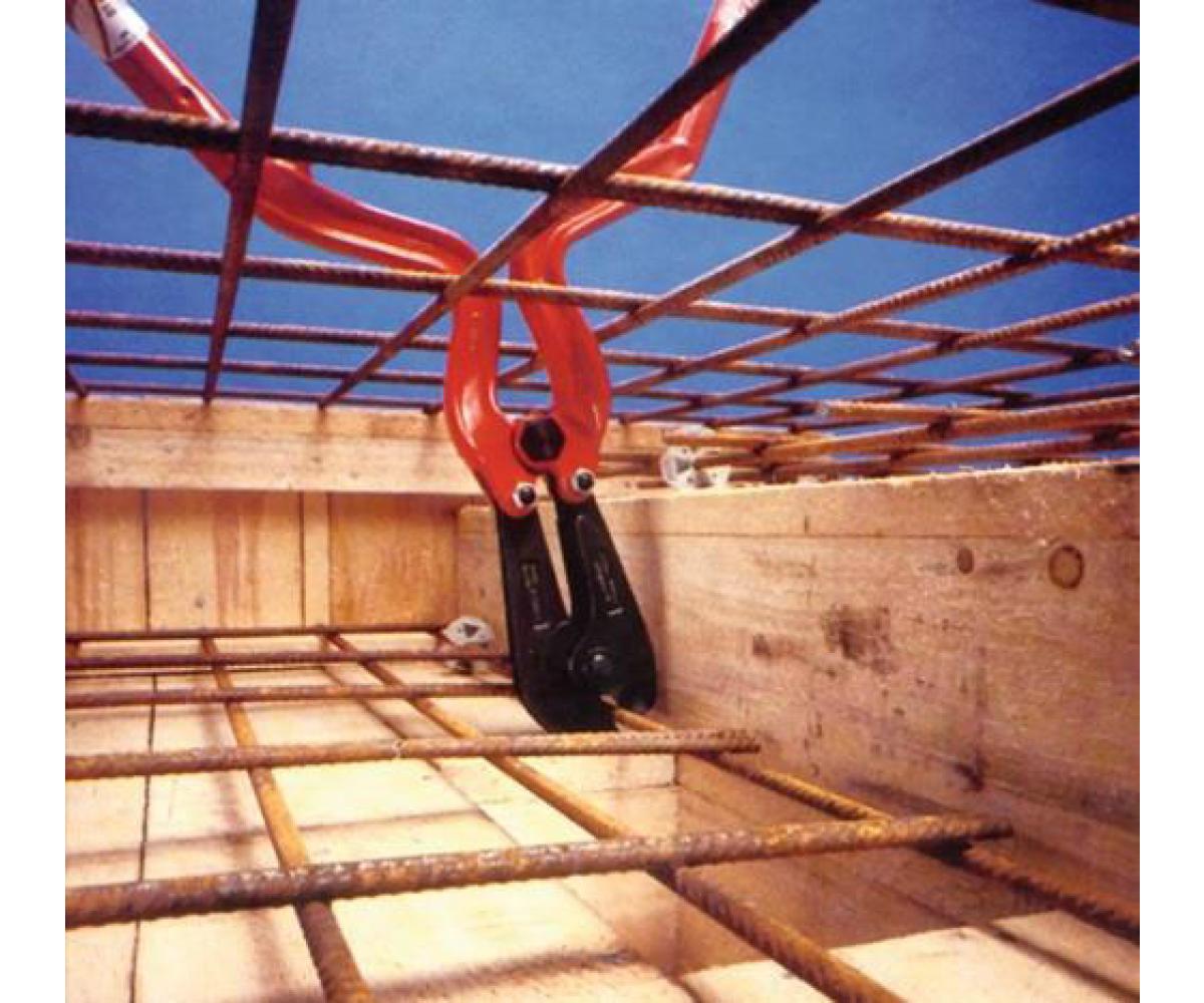 gesenkgeschmiedet · rot lackiert · durch Spezial-Rohrkopf ist das Trennen in der 1. und 2. Ebene möglich · 20º Schneidwinkel ermöglichen das Trennen bis in die äußersten Ecken · mit Exzenterschrauben zum Nachstellen der Messer · Schneiden induktiv gehärtet · max. Schneidleistung bis 48 HRC