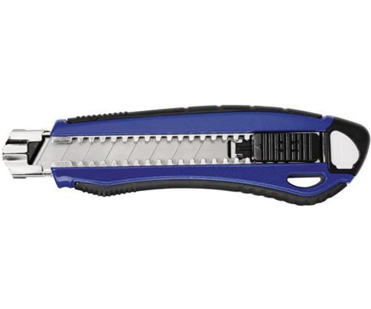 Gehäuse aus Aluminium · Klingenführung aus Edelstahl · mit weichem Gummigriff · Sicherheitsarretierung · integriertes Vorratsmagazin für Ersatzklingen mit automatischer Nachladung · pulverbeschichtet