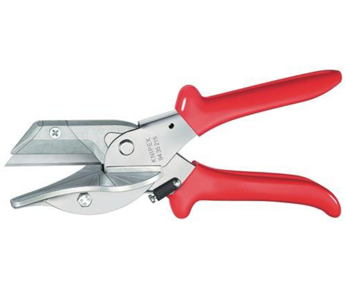 Weitere technische Eigenschaften · Anwendungsgebiete: für Gehrungsschnitte in Fliesenabschlussleisten, Holz- und Dekorleisten · Oberfläche: verchromt · Griffart: mit Kunststoffhüllen · Gehrungsschere L.215mm · Klingen-L.56mm KNIPEX ·