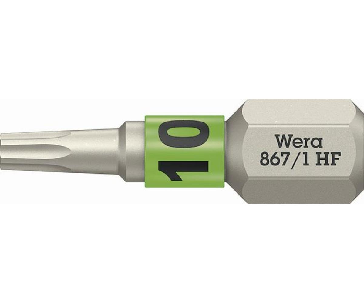 Weitere technische Eigenschaften · Klingenlänge (in Zoll): 1"Zoll · Take it easy Bits: ja · Bit 867 TORX® HF 1/4 Zoll · TX 10 L.25mm · m.Farbleitsystem WERA ·