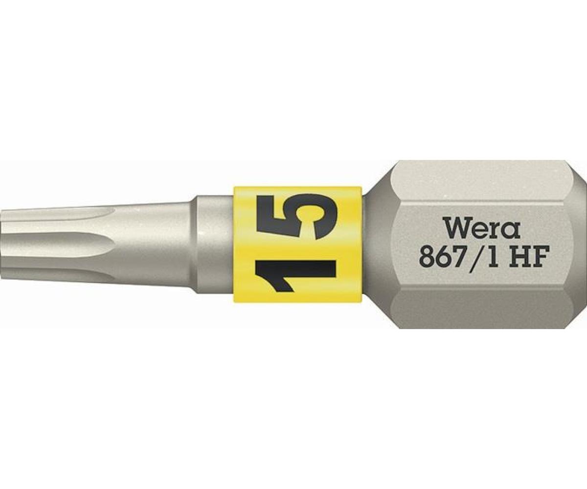Weitere technische Eigenschaften · Klingenlänge (in Zoll): 1"Zoll · Take it easy Bits: ja · Bit 867 TORX® HF 1/4 Zoll · TX 15 L.25mm · m.Farbleitsystem WERA ·