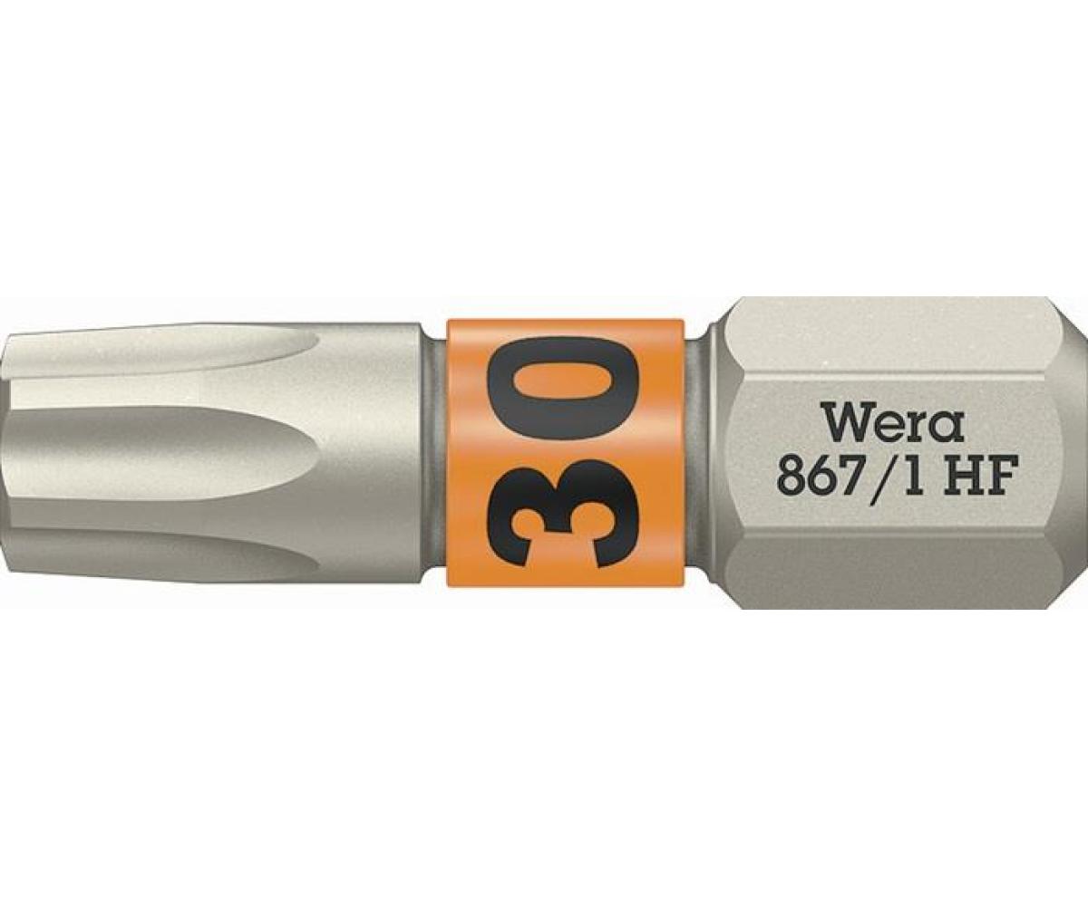 Weitere technische Eigenschaften · Klingenlänge (in Zoll): 1"Zoll · Take it easy Bits: ja · Bit 867 TORX® HF 1/4 Zoll · TX 30 L.25mm · m.Farbleitsystem WERA ·