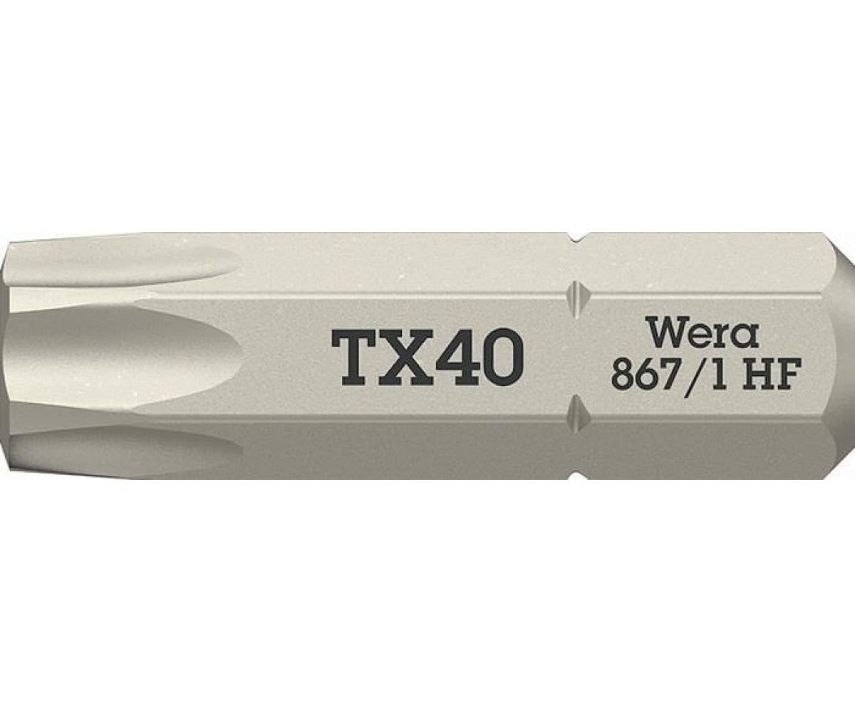 Weitere technische Eigenschaften · Klingenlänge (in Zoll): 1"Zoll · Take it easy Bits: ja · Bit 867 TORX® HF 1/4 Zoll · TX 40 L.25mm · o.Farbleitsystem WERA ·