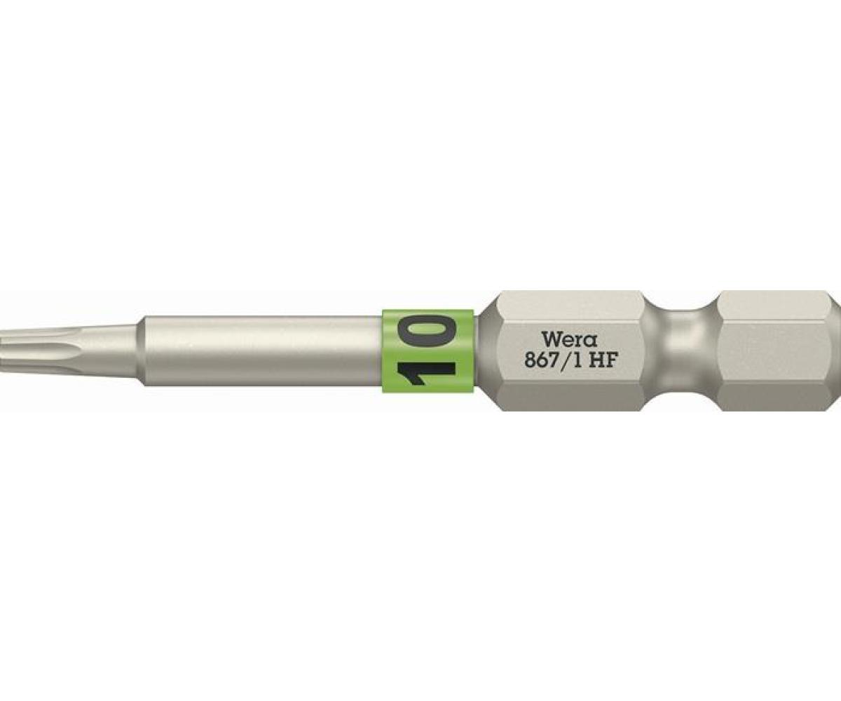 Weitere technische Eigenschaften · Klingendurchmesser: 4,0mm · Klingenlänge (in Zoll): 2"Zoll · Take it easy Bits: ja · Bit 867 TORX® HF 1/4 Zoll · TX 10 L.50mm · m.Farbleitsystem WERA ·