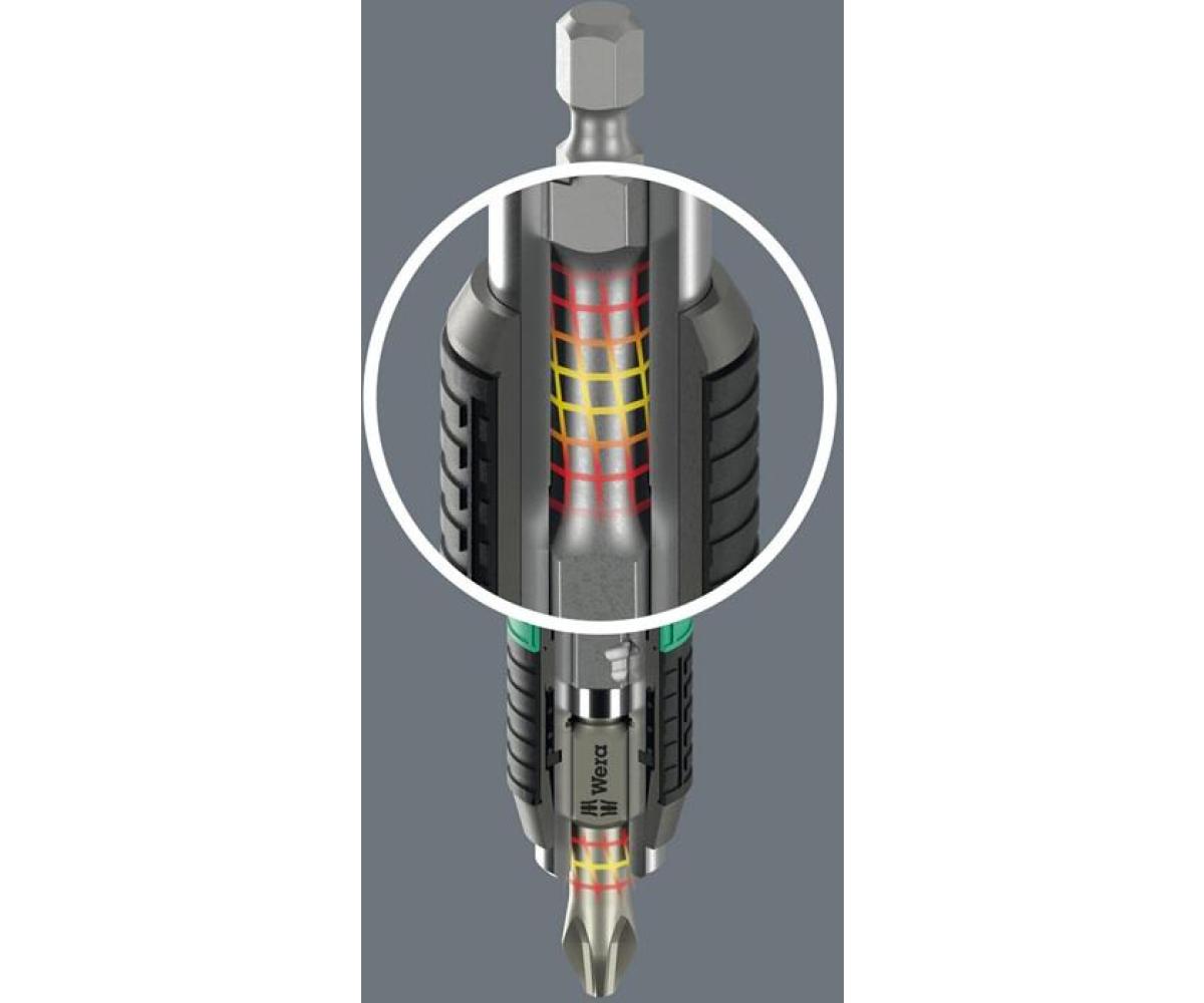 Torsionszone, in die bei Belastungsspitzen kinetische Energie abgeleitet wird · mit weicherer BiTorsionzone zur Vermeidung des Verwindens der Bit-Spitze bei hohen Belastungen, dadurch signifikante Erhöhung der Produktlebensdauer · zähhart · für den universellen Einsatz · 1/4" Sechskant · passend für Halter nach DIN ISO 1173-D 6,3