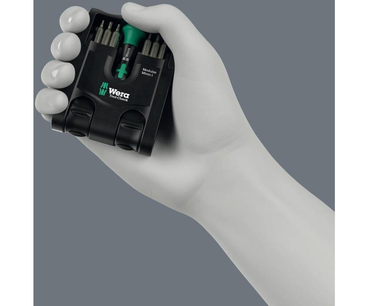 Lieferumfang: 1x Tool-Check Modular Imperial 1, 21-teilig 1x 815/1 Bits-Handhalter, 1/4": 1/4" x 78 mm 1x 8011 Zyklop Mini 4 Bit-Ratsche, 1/4": 1/4" x 50 mm 1x 870/1 Werkzeugschaft (Verbindungsteil): 1/4" x 25 mm 1x 899/4/1 Universalhalter: 1/4" x 50 mm 2x 851/4 BTZ Bits: PH 1x50 mm, PH 2x50 mm 4x 867/1 BTZ TORX® Bits: TX 10x25 mm, TX 15x25 mm, TX 20x25 mm, TX 25x25 mm 1x 800/4 BTZ Bits: 0,8 x 5,5 x 50 mm 4x 840/1 Z Bits: 3/32"x25 mm, 1/8"x25 mm, 5/32"x25 mm, 3/16"x25 mm 2x 868/4 BTZ Innenvierkant Bits: # 1x50 mm, # 2x50 mm 4x 8790 HMA Zyklop-Steckschlüsseleinsatz mit 1/4"-Antrieb: 3/8"x23 mm, 7/16"x23 mm, 1/2"x23 mm, 9/16"x23 mm 1x Tool-Check Modular Micro 1, 21-teilig 1x 1014 Kraftform Micro Bits-Handhalter: 4 x 80 mm 4x 851/0 Micro Bits für Kreuzschlitzschrauben Phillips-Recess: PH 000x30 mm, PH 00x30 mm, PH 0x30 mm, PH 1x30 mm 2x 855/0 Micro Bits geeignet für Pozidriv-Schrauben: PZ 0x30 mm, PZ 1x30 mm 6x 867/0 Micro Bits für Innen TORX® Schrauben: TX 3x30 mm, TX 4x30 mm, TX 5x30 mm, TX 6x30 mm, TX 8x30 mm, TX 10x30 mm 5x 840/0 Micro Bits Hex-Plus für Innensechskantschrauben: 0,9x30 mm, 1,3x30 mm, 1,5x30 mm, 2x30 mm, 2,5x30 mm 3x 800/0 Micro Bits für Schlitzschrauben: 0,3x1,5x30 mm, 0,40x2,5x30 mm, 0,50x3x30 mm 1x Tool-Check Modular Winkelschlüssel Hex-Plus 1, 7-teilig 7x 950 Winkelschlüssel, metrisch, gestellverchromt: 1,5x45 mm, 2x50 mm, 2,5x56 mm, 3x63 mm, 4x70 mm, 5x80 mm, 6x90 mm 1x 9549 Adapter für Tool-Check Modular, 10,5 x 47 x 16,5 mm 1x 9550 Scharnier für Tool-Check Modular, 67,5 x 91 x 22 mmTechnische Daten