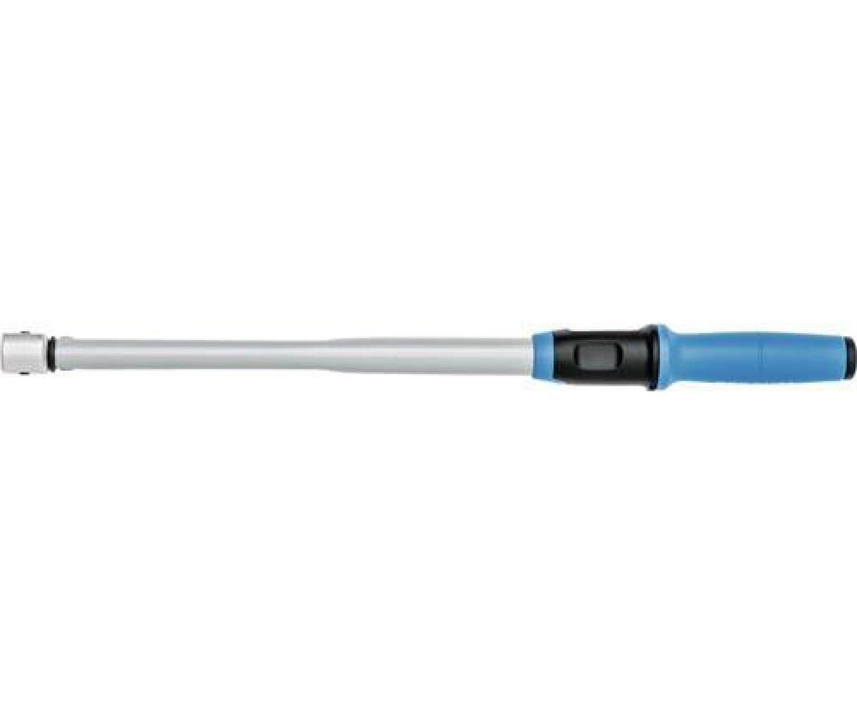 für Einsteckwerkzeuge · verstellbarer Drehmomentschlüssel mit Innen-Rechteckaufnahme · für den kontrollierten Rechts- und Linksanzug · mit Stiftsicherung für auswechselbare Einsteckwerkzeuge · inkl. Prüfzertifikat nach DIN EN ISO 6789-2:2017, rückführbar auf Nationale Normale · Knickmechanik mit Gleitrolle garantiert ein fühlbares und hörbares Auslösesignal · justiert auf eine Auslösegenauigkeit von ± 3 % Toleranz vom eingestellten Skalenwert · robuste, lackierte Stahlrohr-Konstruktion, mit verzinkter Aufnahme und glasfaserverstärkten Kunststoffteilen · Doppel-Skala Nm und lbf.ft. geschützt unter einem Sichtfenster mit Lupeneffekt · zusätzliche Mikrometer-Skala mit einer Nm-Teilung (Details siehe Tabelle "Nonius") · ergonomischer Kunststoffgriff · Griff mit Einkerbung in der Griffmitte als Kalibrierhilfe