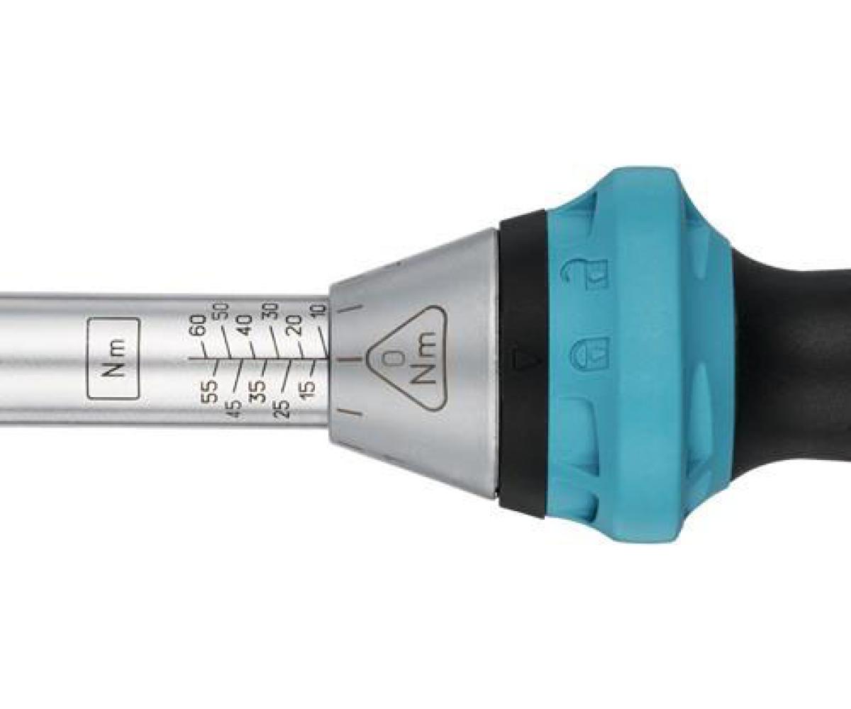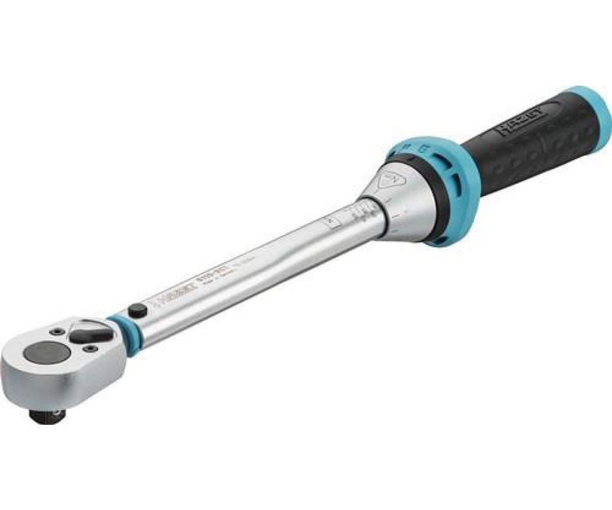mit Umschaltknarre · für Rechtsgang · automatische, deutlich hör- und spürbare Kurzwegeauslösung beim Erreichen des vorgewählten Drehmomentes · Auslösegenauigkeit ± 3 % vom eingestellten Skalenwert (in Betätigungsrichtung) · Befestigungsmöglichkeit für Seilschlaufe durch Öffnungen am Verriegelungs-Drehkranz · dauerhafte Lesbarkeit durch Laserbeschriftung der Skalenhülse · Abrollschutz · Einstellhilfe durch Rastpunkte gewährleistet sicheres und schnelles Einstellen des gewünschten Drehmomentwertes durch Drehen des Griffes · 2-Komponentengriff · Schloss-Symbole signalisieren den jeweiligen Verriegelungszustand