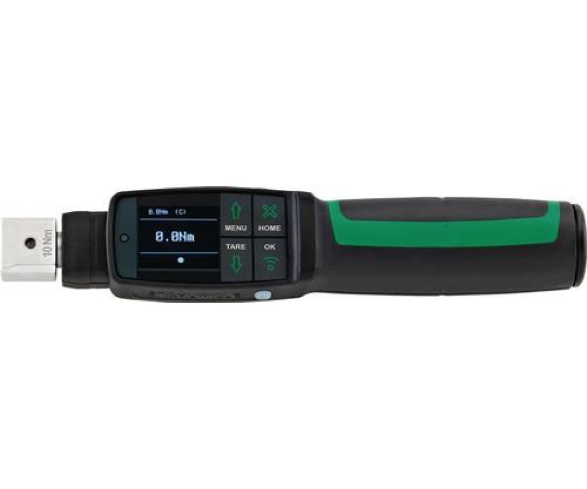 mit Aufnahme für Einsteckwerkzeuge · elektromechanisch · anzeigend und auslösend · 4 Messmodi: Drehmoment, Drehwinkel, Drehmoment mit Kontrollgröße Drehwinkel, Drehwinkel mit Kontrollgröße Drehmoment · Nm, ft·lb, in·lb als Maßeinheiten · für den kontrollierten Rechts- und Linksanzug · Drehmoment und Drehwinkel gleichzeitig sichtbar · Art.-Nr. 8000 332 362, 8000 332 365 und 8000 332 367 Messung unabhängig vom Kraftangriffspunkt · mit QuickRelease-Sicherheitsverriegelung · nach Entlastung sofort wieder funktionsbereit · einstellbar über Tastatur · großes, hochauflösendes, farbiges Grafik-Display · seitliche Signalleuchten · dokumentationsfähig mit der Software SensoMaster – bis zu 200 Schraubfälle in max. 25 Ablaufplänen mit verschiedenen Toleranzgrenzen programmierbar – Datenspeicherung bis 2.500 Schraubvorgänge inkl. Datum & Zeitstempel · ergonomischer 2-Komponenten-Griff (resistent gegen Öle, Fette, Kraftstoffe, Bremsflüssigkeiten und Skydrol) · automatische Kalibrierung mit der perfectControl® Kalibrier- und Justiereinrichtung · Genauigkeit Drehwinkel: Anzeigeabweichung: ±1° ±1 Digit bis 100°, >100° mindestens 1% ± 1 Digit, Anzeigeauflösung: 0,1°, Genauigkeit Drehmoment: Anzeigeabweichung: ± 2 %, ± 1 digit, Anzeigeauflösung: = 60 Nm: 0,01 Nm