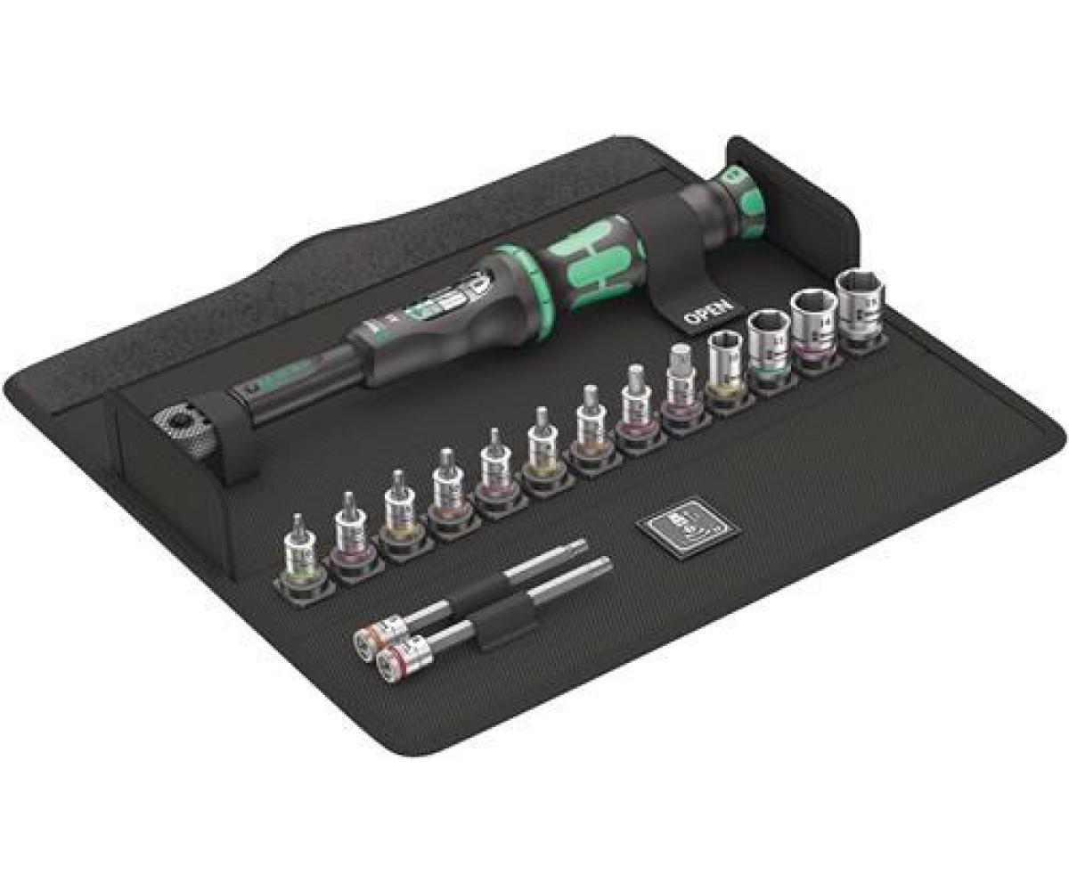 Weitere technische Eigenschaften · Inhalt: 16-teilig · Skalenteilung: 0,1Nm · prüfpflichtig: ja · Drehmomentschlüsselset · Bicycle Set Torque 1 · 16-tlg.2,5-25 Nm 1/4 Zoll · Inhalt: 1 Drehmomentschlüssel mit 6,3 mm (1/4?)-Vierkantantrieb je 1 Steckschlüsseleinsatz für Schrauben mit Innen-TORX®-Profil Gr. T 10 / 20 / 25 / 30* je 1 Steckschlüsseleinsatz für Schrauben mit Innensechskant-Profil Gr. 3 x 28 / 4 x 28 / 5 x 28 / 5 x 100 / 6 x 28 / 6 x 100 / 8 x 28 mm** je 1 Steckschlüsseleinsatz für Schrauben mit Aussensechskant-Profil Gr. 10 x 23 / 13 x 23 / 14 x 23 / 15 x 23 mm* * mit Tool finder System ** mit Haltefunktion und Tool finder System ·