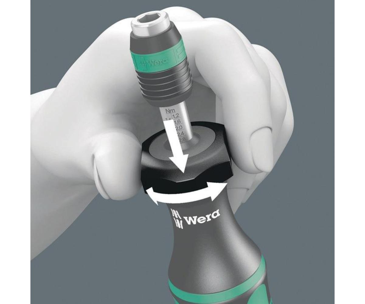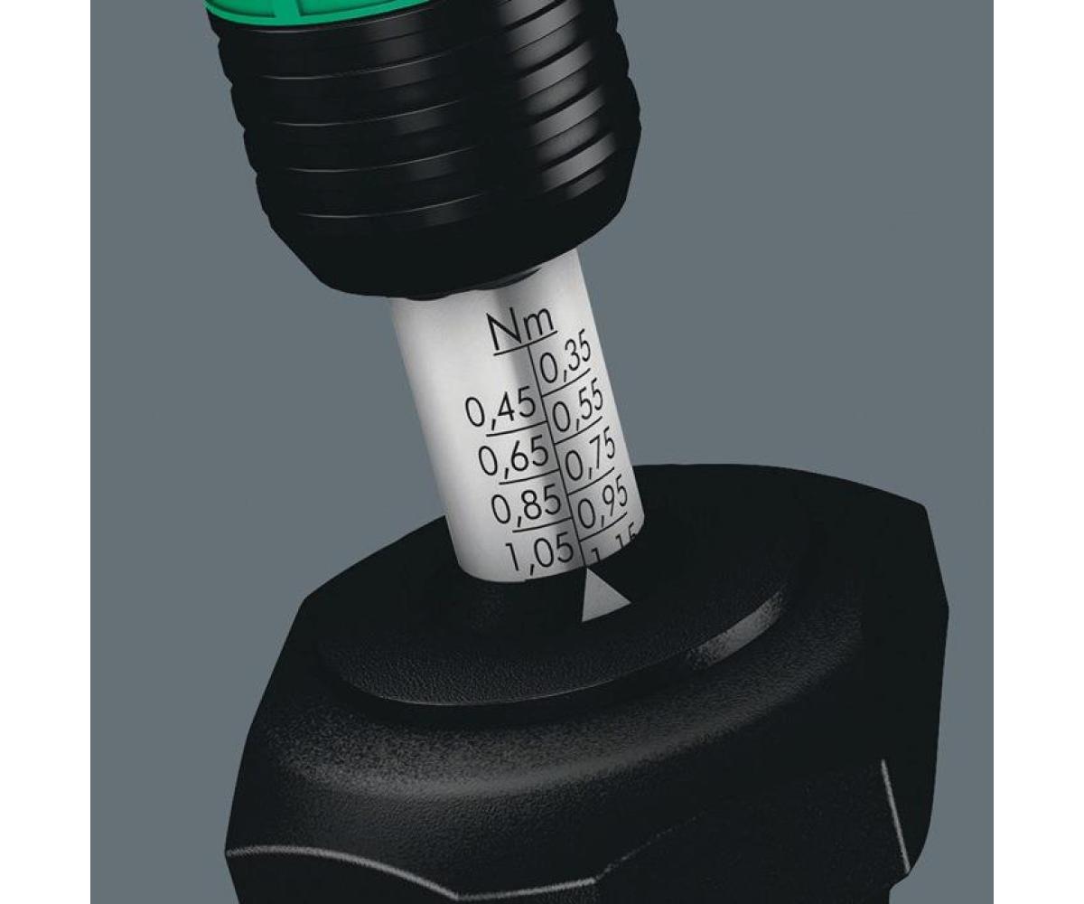 Weitere technische Eigenschaften · prüfpflichtig: ja · Abrollschutz: ja · Aufnahmegröße: 1/4"Zoll · Bit-Handhalter mit Rapidaptor-Schnellwechselfutter: ja · Einstellbar: ja · Grifflänge: 89mm · Länge Drehmomentschlüssel (in Zoll): 5 7/16"Zoll · Torque: ja · Drehmomentschraubendreher · 0,10-0,34 Nm WERA ·