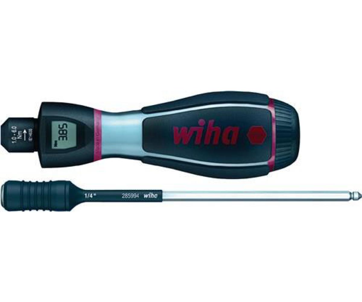 mit stufenlos einstellbarem Drehmoment und großem Digitaldisplay Drehmoment einstellbar über einen im Griff integrierten Drehknopf · deutlich hör- und fühlbares Klicksignal beim Erreichen des eingestellten Drehmomentwerts · Genauigkeit: ± 6% · Gesamtlänge: 134 mm - Click-Control - ein integrierter Zähler erfasst jede Anwendung - Kalibrieralarm nach je 5.000 Anwendungen (Norm-Richtwert-rücksetzbar) - Anzeige umschaltbar (Nm 1 in.lbs / Ncm 1 in.oz) - rekalibrierbar durch Wiha Service