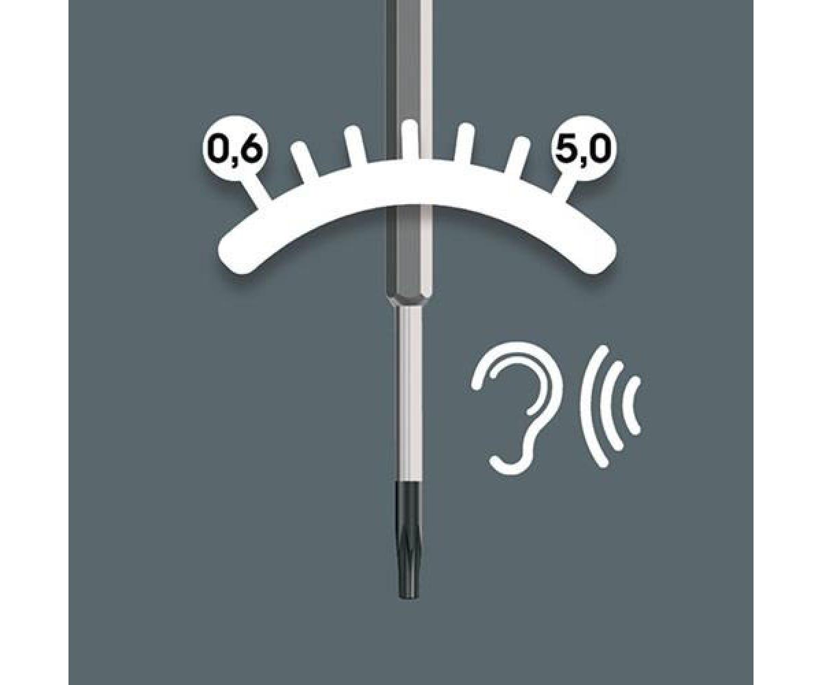 mit Kraftform-Griff mit Sechskantklinge und verchromter Black Point-Spitze · beim Erreichen des Drehmoments löst der Drehmoment-Schraubendreher mechanisch aus und signalisiert dies deutlich hör- und fühlbar · Genauigkeit +/- 10 % - voreingestelltes, nicht manipulierbares Drehmoment - lange schlanke Klinge mit nur 4-mm-Sechskant - voreingestelltes Drehmoment durch einen Siegelring gegen Manipulation geschützt - im Gegensatz zum Anzugsmoment ist das Lösemoment nicht begrenzt - Griffkennzeichnung mit dem Antriebssymbol der Schraube, der Größe und dem voreingestellten Drehmoment