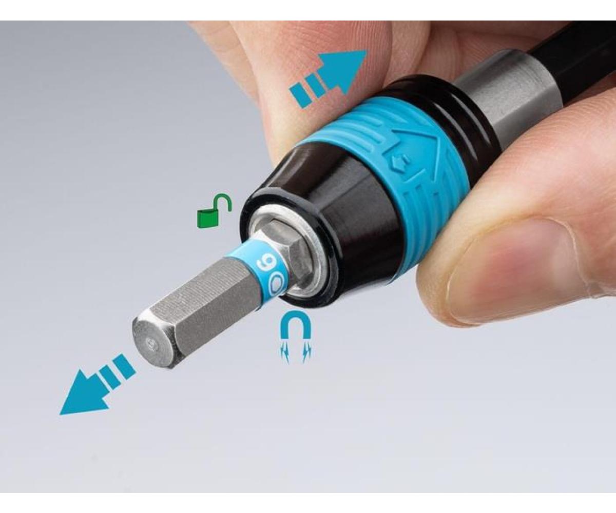 „Knarrenfunktion“ mit Freilaufmechanismus · umschaltbar rechts – links – fest · ermöglicht schnelles Arbeiten durch reibungsloses Nachfassen beim Betätigen von Verschraubungen auch in beengten Bauräumen · hervorragende Ablesbarkeit der Drehmomenteinstellung durch große, eindeutige Ziffernanzeige · kurzer 36°-Auslöseweg mit ergonomischem Auslöseverhalten und deutlich hörbarem Signal · Bithalter mit Schnellverschluss – schneller Bitwechsel mit einer Hand · Auslösemechanismus aus hochlegiertem Werkzeugstahl mit hervorragender Verschleißfestigkeit · Überschreiten des eingestellten Drehmomentes wird durch Überrastkupplung („Slipper“) ausgeschlossen · leicht erkennbarer Verriegelungszustand mittels Schloss-Symbolen · mit Kalibrierschein und Seriennummer · Kalibrier- und Reparierfähigkeit im Remscheider HAZET Service-Center · ergonomischer HAZET 2-Komponenten-Griff · geprüft nach DIN EN ISO 6789-2:2017 · Abtrieb: 1/4 Zoll (6,3 mm) · Sechskant hohl · für Handbetätigung · Genauigkeit: 6%