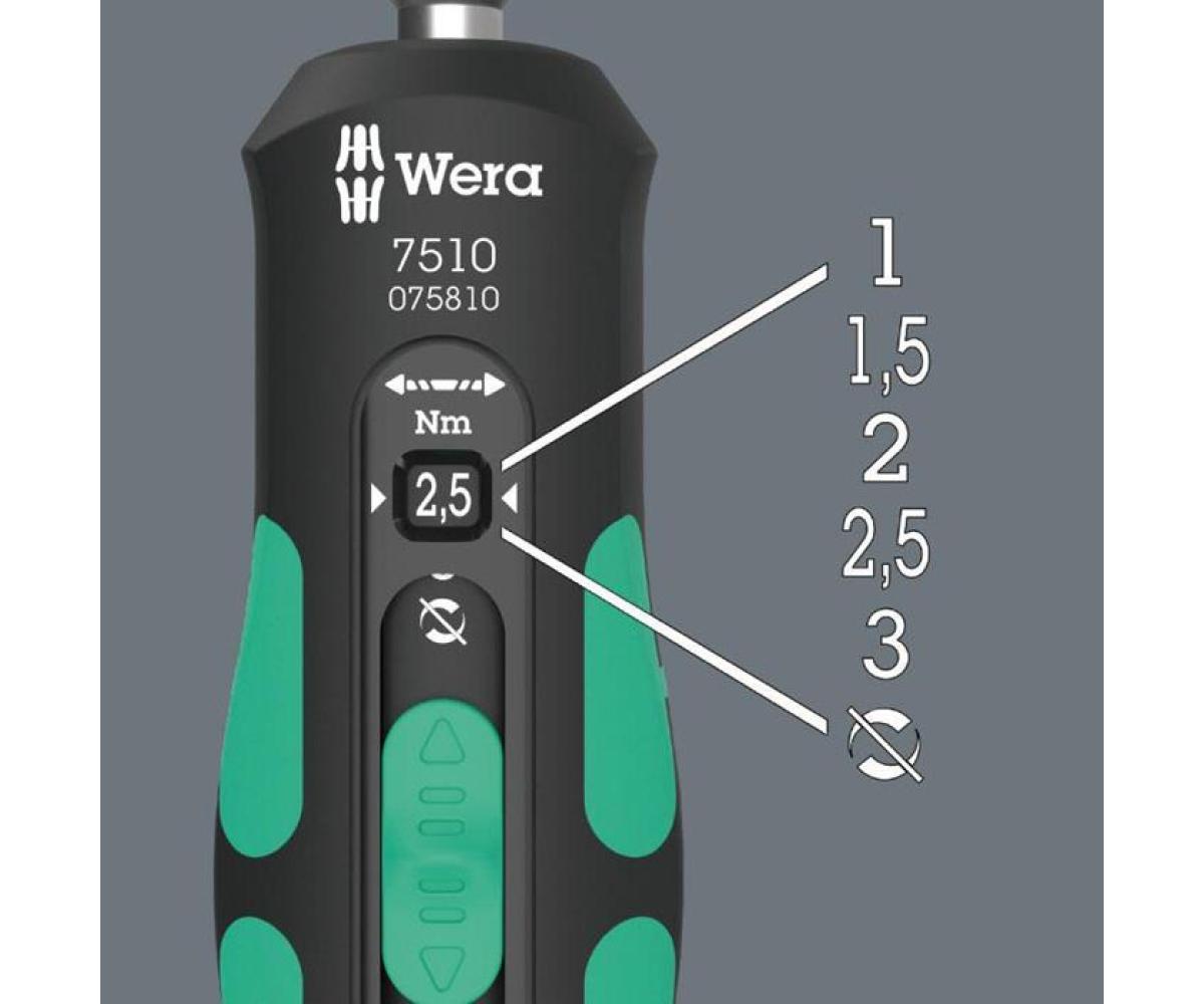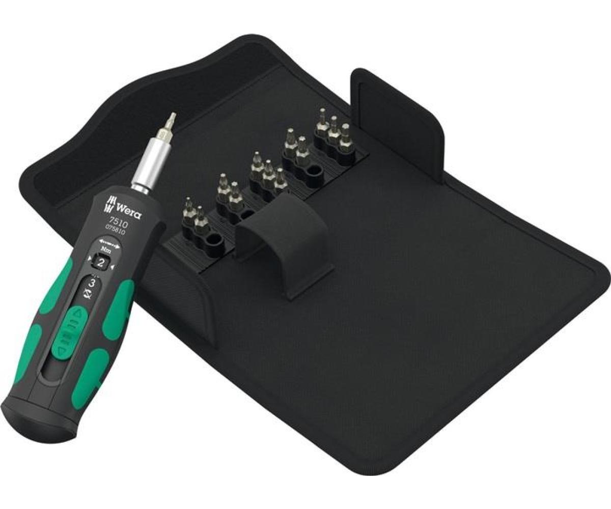 Weitere technische Eigenschaften · Inhalt: 14-teilig · prüfpflichtig: ja · Adjustable 1-3 S: ja · Ausführung: TORX® · Geeignet für Wera 2go: ja · Hex-Plus: ja · Safe-Torque Rechts/Links Umschalten: ja · Torque: ja · Torque Lock Funktion: ja · Überrutschmechanik: ja · Drehmomentschraubendreher · 7510/14 14teilig f.HM-We · ndeschneidplatten WERA ·