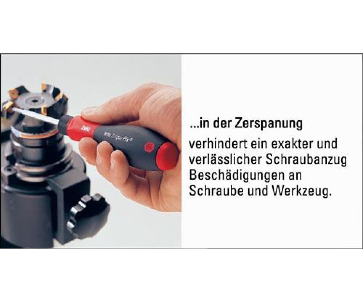 Inhalt 4000 827 982: 1 Drehmomenthandgriff 1 Einstellwerkzeug (Torque-Setter) 1 Universal-Bithalter für Bits C 6,3 u. E 6,3 je 1 Bit für Schrauben mit Kreuzschlitz (PH) Gr. 1 - 2 je 1 Bit für Schrauben mit Kreuzschlitz (PZD) Gr. 1 - 2 je 1 Bit für Schrauben mit Innen-TORX®-Profil Gr. T 10 / 15 / 20 / 25 je 1 Bit für Innensechskantschrauben Gr. 3 - 4 mm alle Bits 25 mm lang DIN EN ISO 6789 Lieferung in Stahlblechkassette, inkl. WerksprüfprotokollTechnische Daten