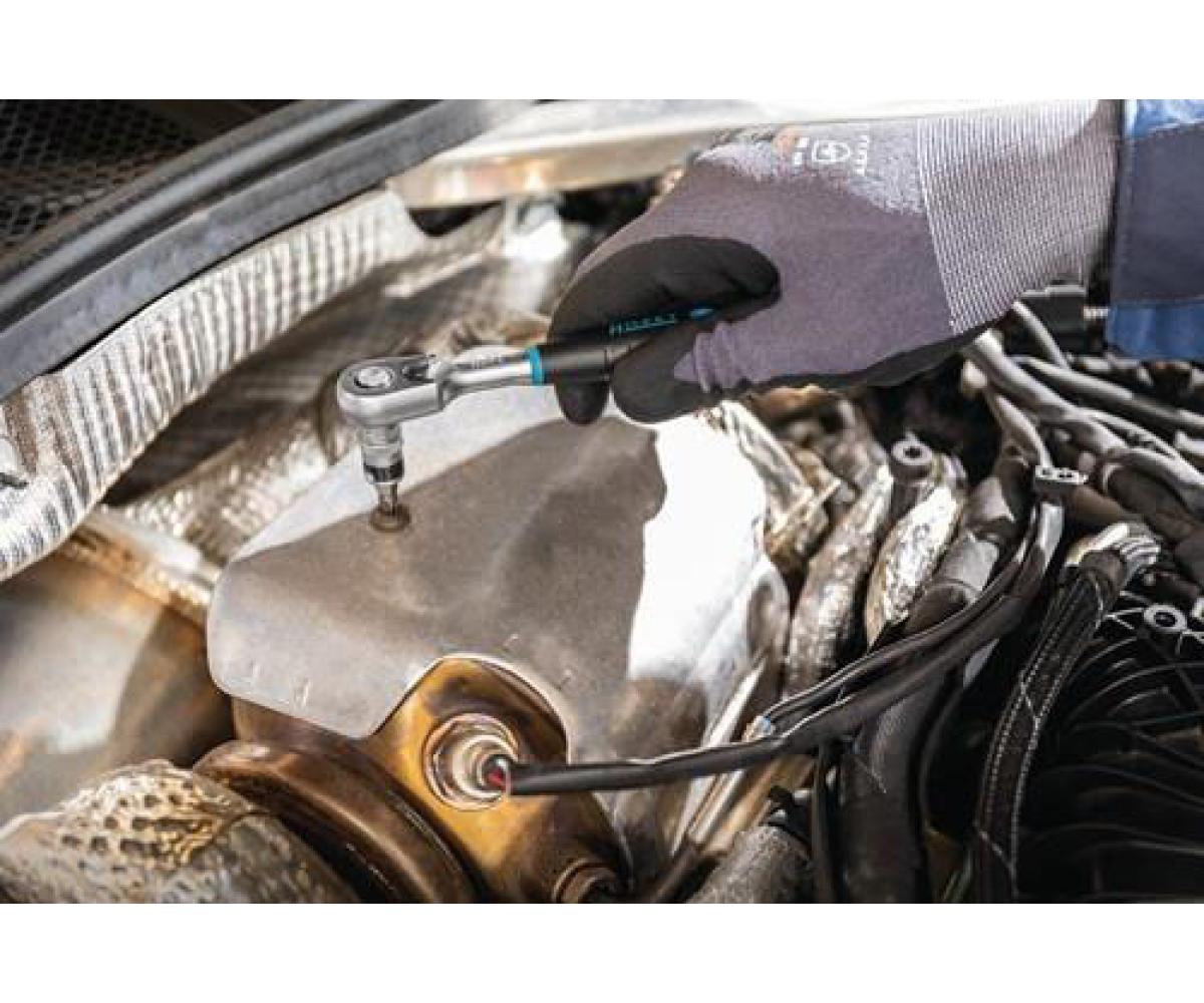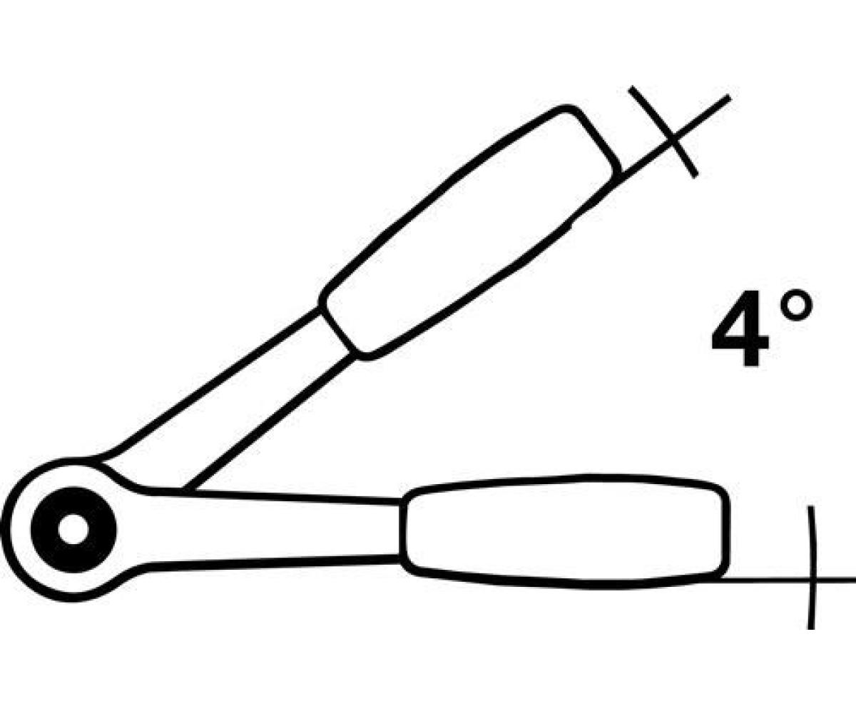 6,3 mm (1/4 ?)-Vierkantantrieb ? mit 2-Komponentengriff · CV-Stahl · verchromt · mit Rastfunktion gegen ungewolltes Umschalten · auch geeignet für das Arbeiten in engsten Bauräumen · statisches Drehmoment nach DIN 3122: 100 Nm