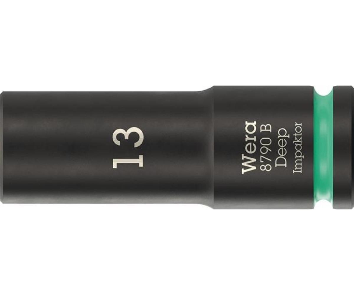 Weitere technische Eigenschaften · Außenmaß (d1): 20,0mm · Durchmesser hinten (d2): 22,0mm · Icon links: Außensechskant · Icon rechts: Aussenvierkant · Schlagschrauberfest: ja · Take it easy Nuss: ja · Steckschlüsseleinsatz · 8790 B Impaktor Deep 3/8 · Zoll 13mm L.63mm WERA ·